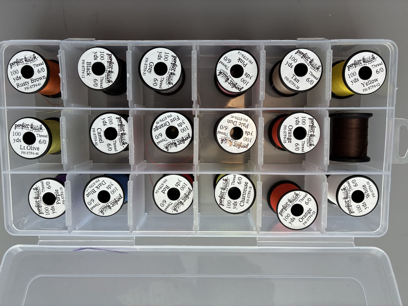 VenmoCleaning out some of my excess fly tying supplies and found this box of stuff. There is a lot of stuff in there - hackles, deer hair, alpaca, hooks, tools, vise, and more. Also throwing in my set of perfect hatch 6/0 tying thread. See photos for colors. There are a lot of bags in bags.
