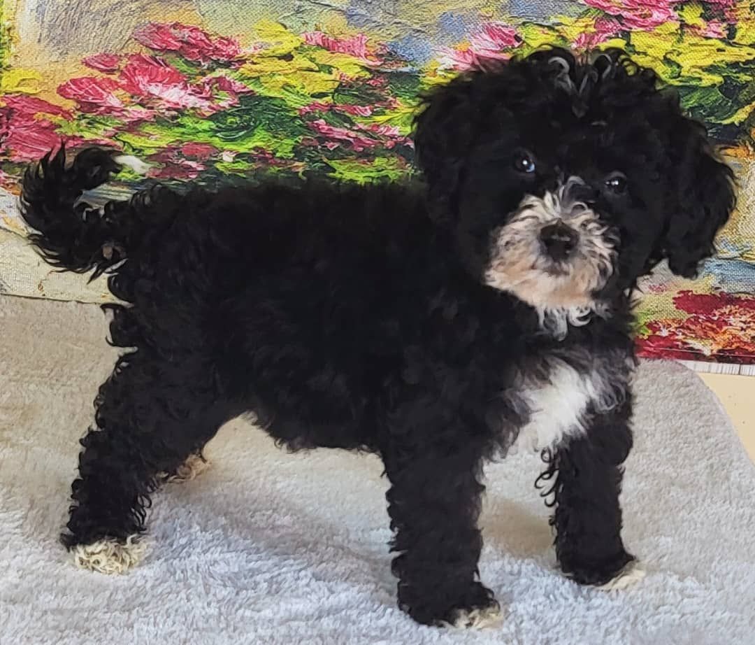 ZelleMendy is an adorable Micro Bernedoodle boy with a sweet, playful personality and a loving temperament. He’s expected to weigh around 15–20 lbs full grown, making him a perfect small companion for cuddles, travel, and easy everyday living.