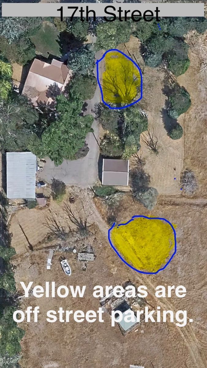 Please do not park along 17th Street in front of the property (so those exiting can see oncoming traffic). We will have plenty of parking on the property (see the map below for highlighted parking areas).