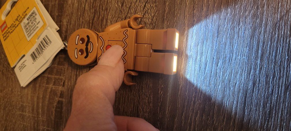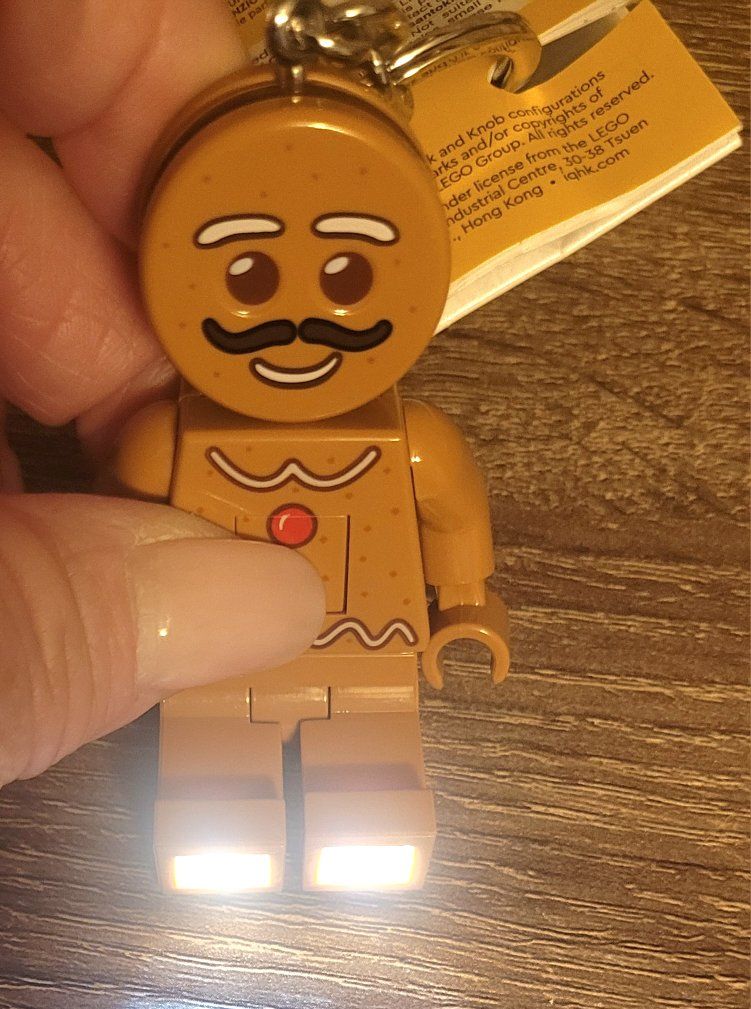 Add a touch of iconic LEGO charm to your everyday carry with the LEGO Gingerbread Man Keychain Light. Designed for more than just the holidays, this sweet character is a functional, year-round tool for LEGO fans ages 6 and up. ENHANCED 3-INCH SIZE: Standing at 3 inches (76mm) tall, this figure is a 175% scale replica, making it a substantial and easy-to-find accessory for your gear. This is not standard LEGO minifigure size. DUAL LED FOOT LIGHTS: Brighten up walkways or find keyholes with ease. Simply press and hold the button on the Gingerbread Man’s chest to activate two powerful LED lights located in the feet. FULLY POSABLE DESIGN: This large figure features a movable head, arms, hands, and legs. Aim the light beams in different directions by posing the legs to suit your needs. VERSATILE EDC ACCESSORY: The durable metal key ring securely attaches to backpacks, purses, lunch bags, or lanyards. It’s a functional tool for everyday carry (EDC), ideal for finding items in a car or bag. BATTERIES INCLUDED: Ready to use! Includes 2 long-lasting CR2025 3V batteries that are also easily replaceable for continued use. Recommended for ages 6 and up