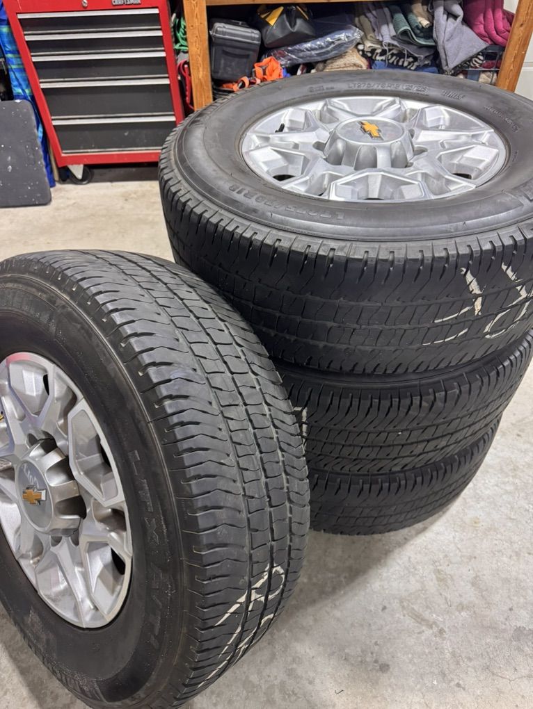 VenmoI took these tires off my 2023 Chevy HD. The tires are Michelin LTX2 size 275/70R18. The tires wear is between 4/32 and 7/32. The rims are in excellent condition.