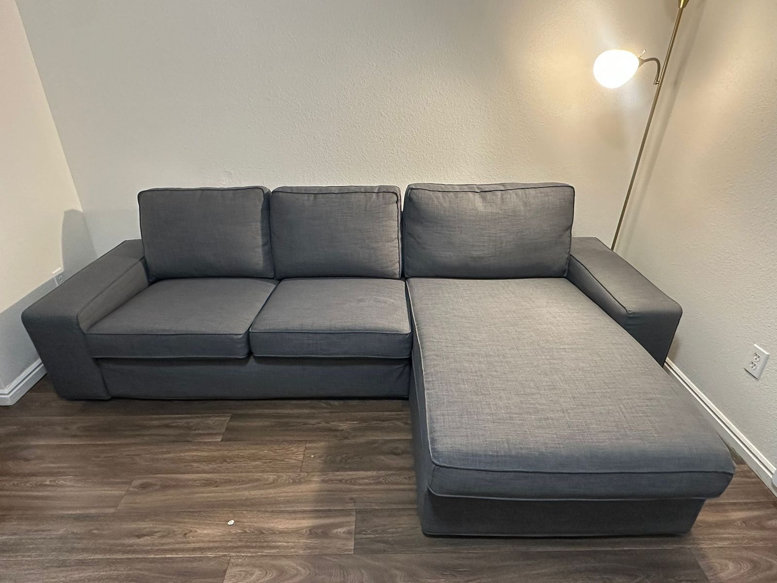 It is used like new, all the pillows and seating have detachabale covers that can be washed. It not have any stains, it is pet free and also the pillows without covers and seating are all clean as a brand new one!