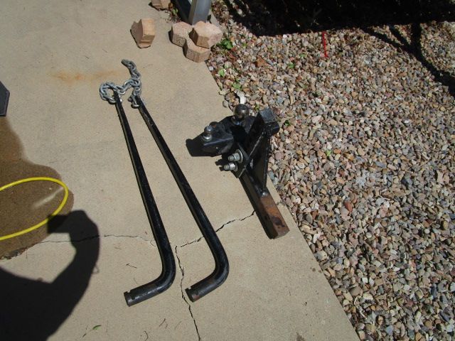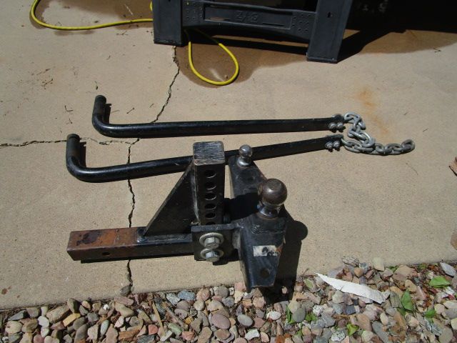 Equalizer Hitch in good shape. 2 5/16 Ball that fits most medium to large trailers. Worked very well for me but accidently sold the trailer with the brackets. Brackets on Amazon are $49. Cash Only. No Scams. Will not respond to “Is this still available”