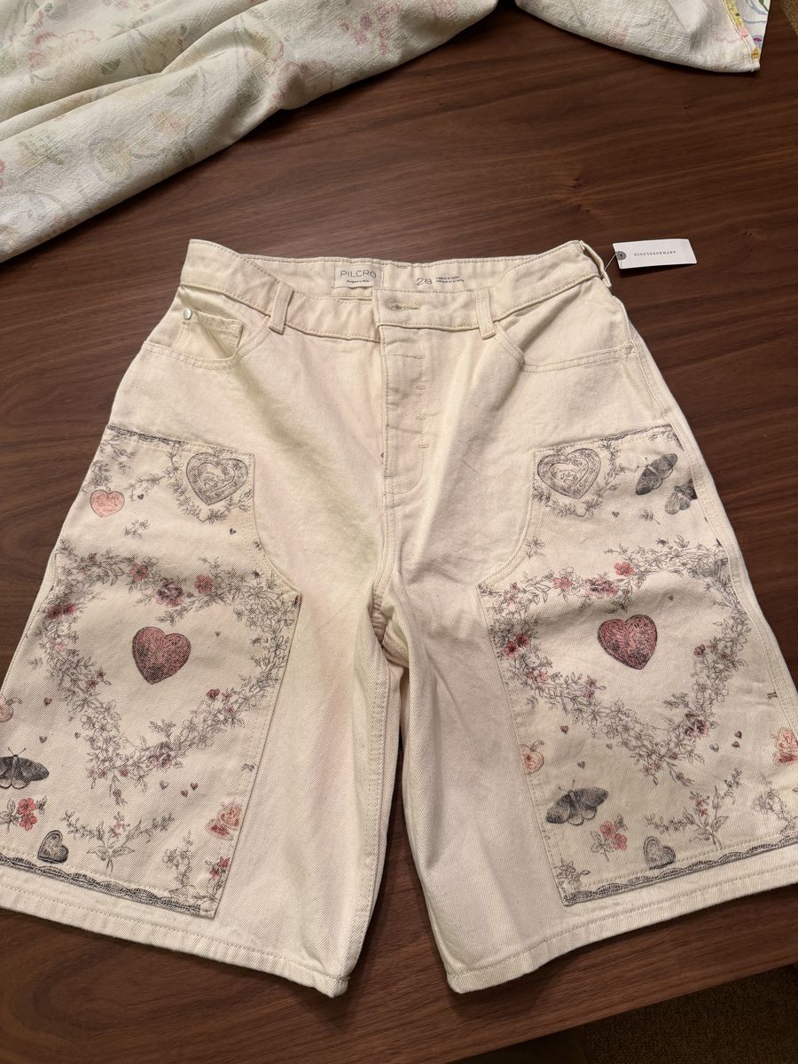 VenmoDarling anthropology love shorts with heart embellishments. Never been worn. selling because they are too big for me.