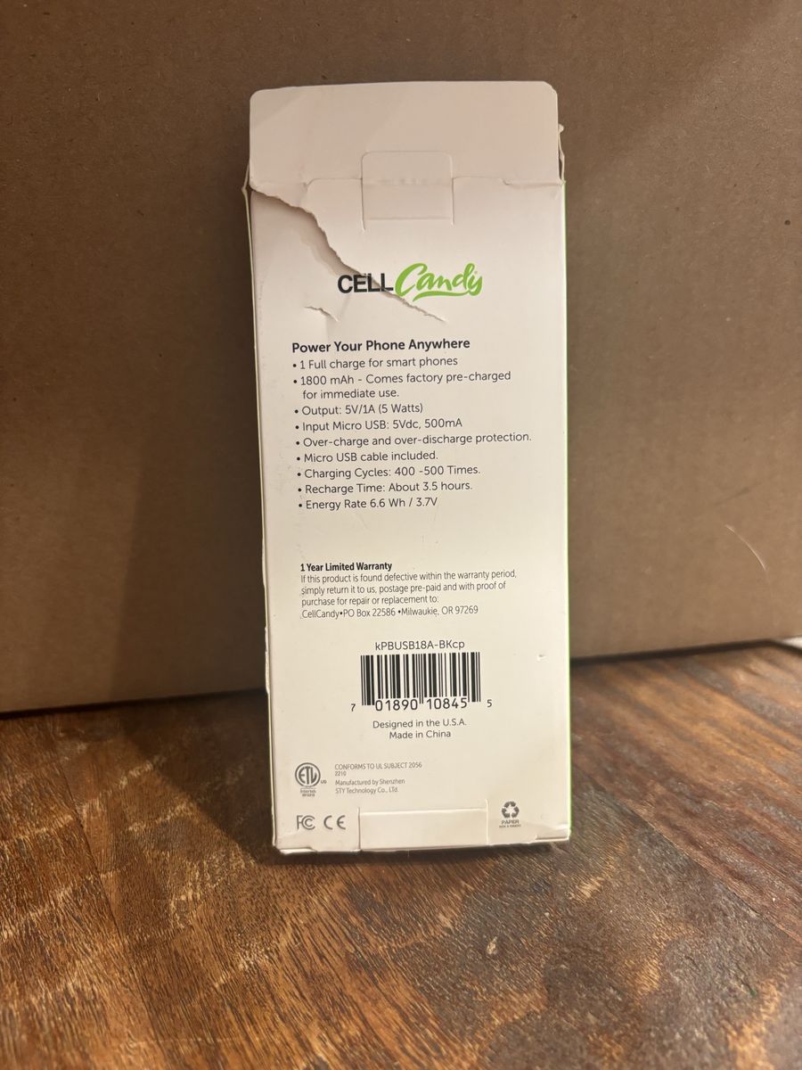 Venmo• Compact 1800mAh battery bank charges smartphones, tablets, and any USB device — provides up to 1 full phone charge and 8 hours of talk time