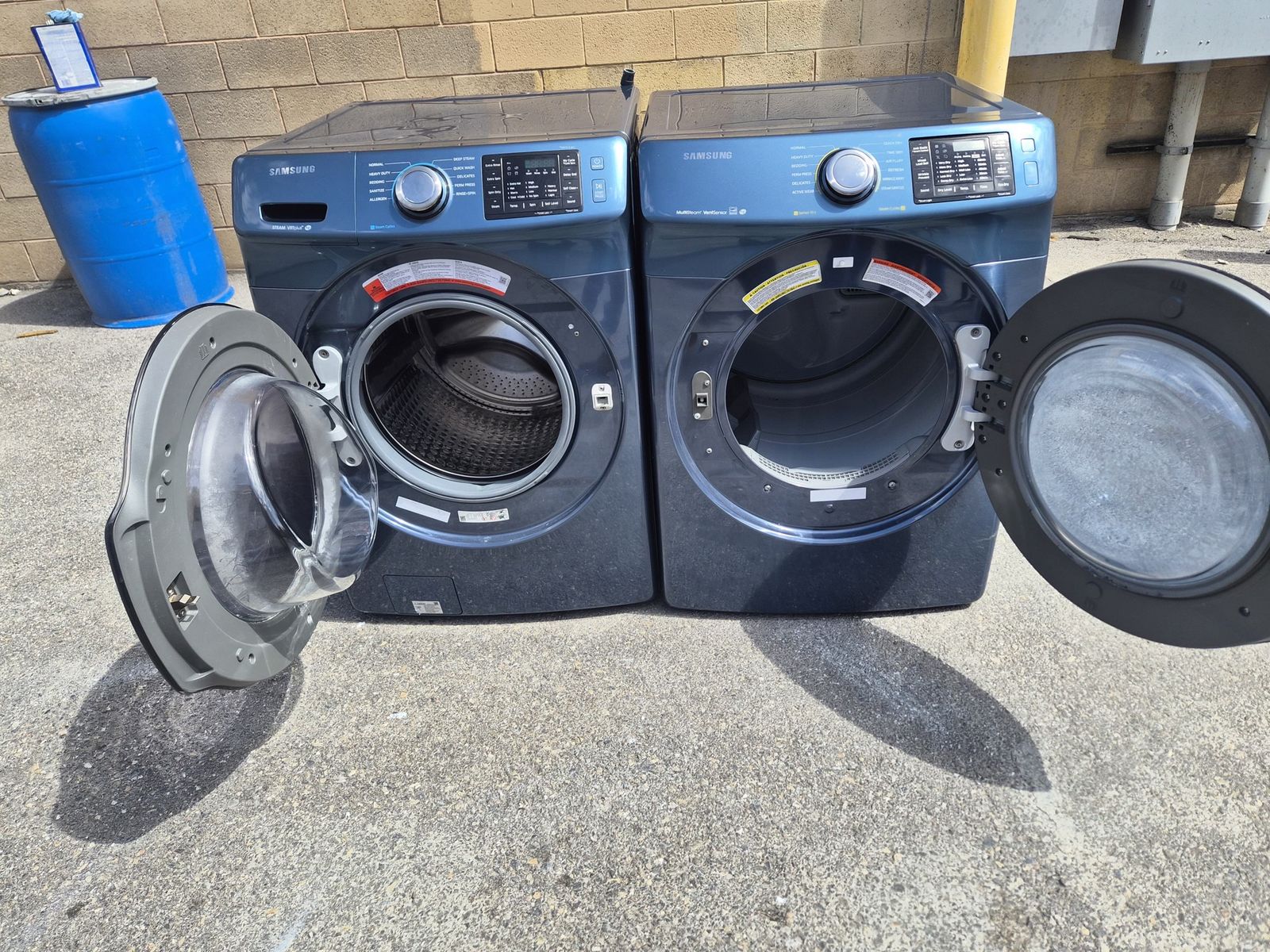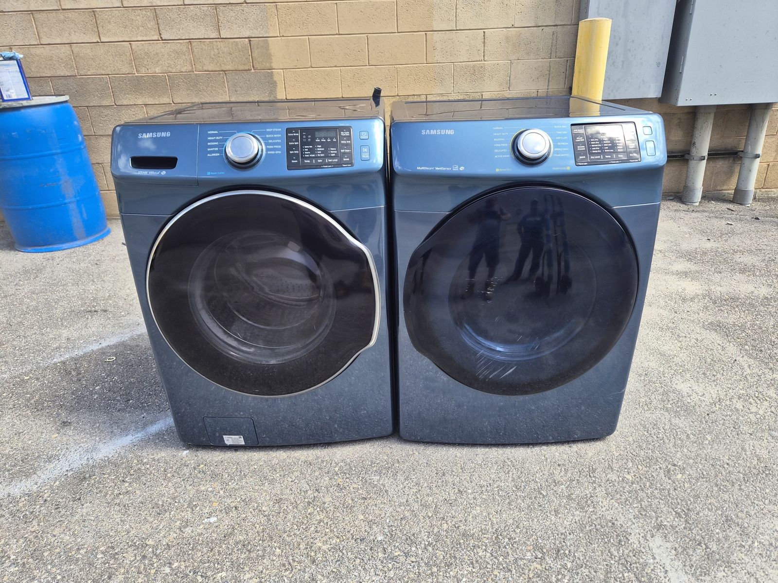 Hello I have a nice and clean Samsung electric set for sale,both of these machines are in good shape and work with no problems,this machines can be stacked on top of each other or use side to side,washer has Tub clean,heavy duty ,dryer has quick dry ,bulky large etc,feel free to call or txt with any questions (801)695-0314 I can deliver for free on the SLC area,thanks for looking.
