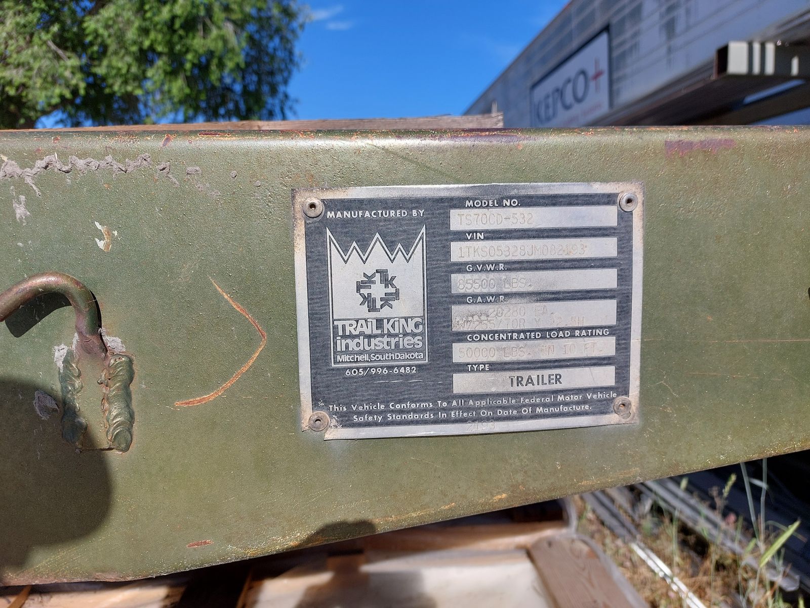 GVWR 85,500 lbs, tandem axle, air brakes released and all tires roll, 12 sliding winches, wood floor needs replacing. Free and clear title.