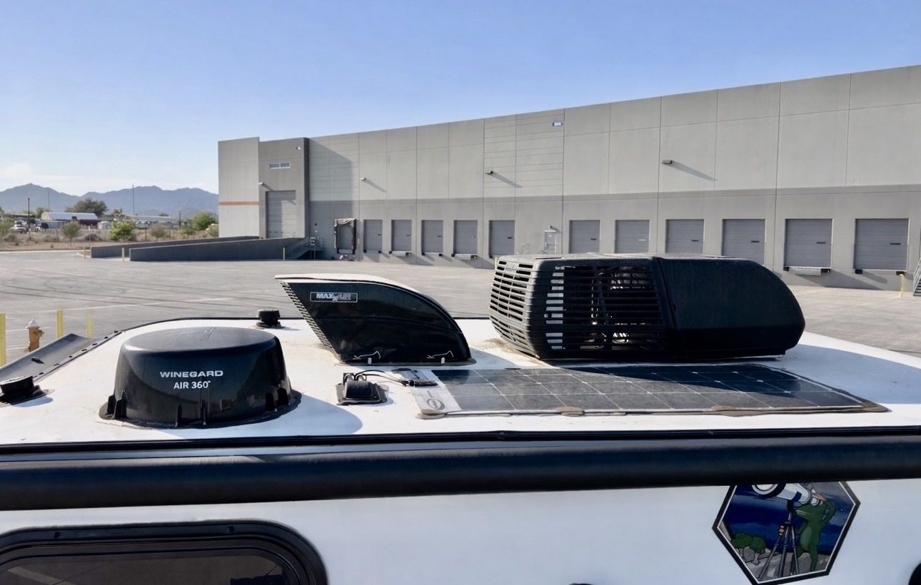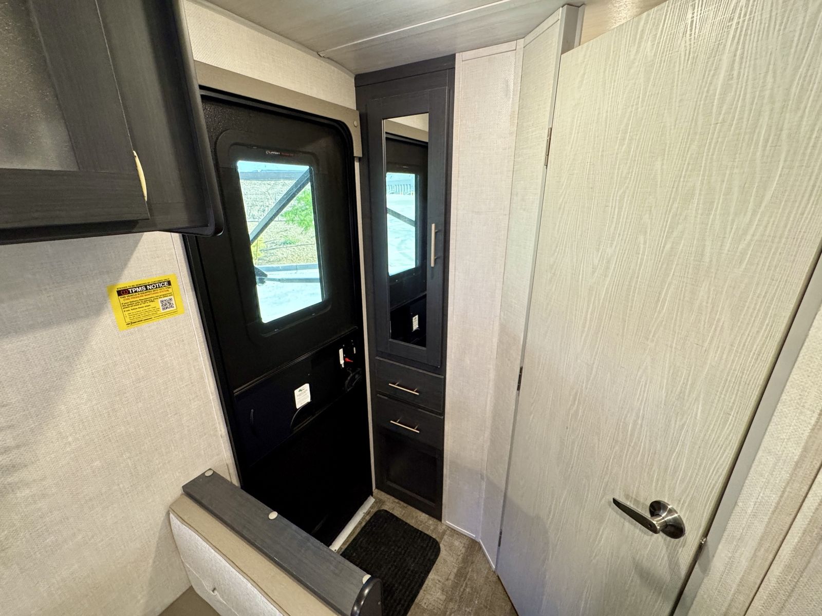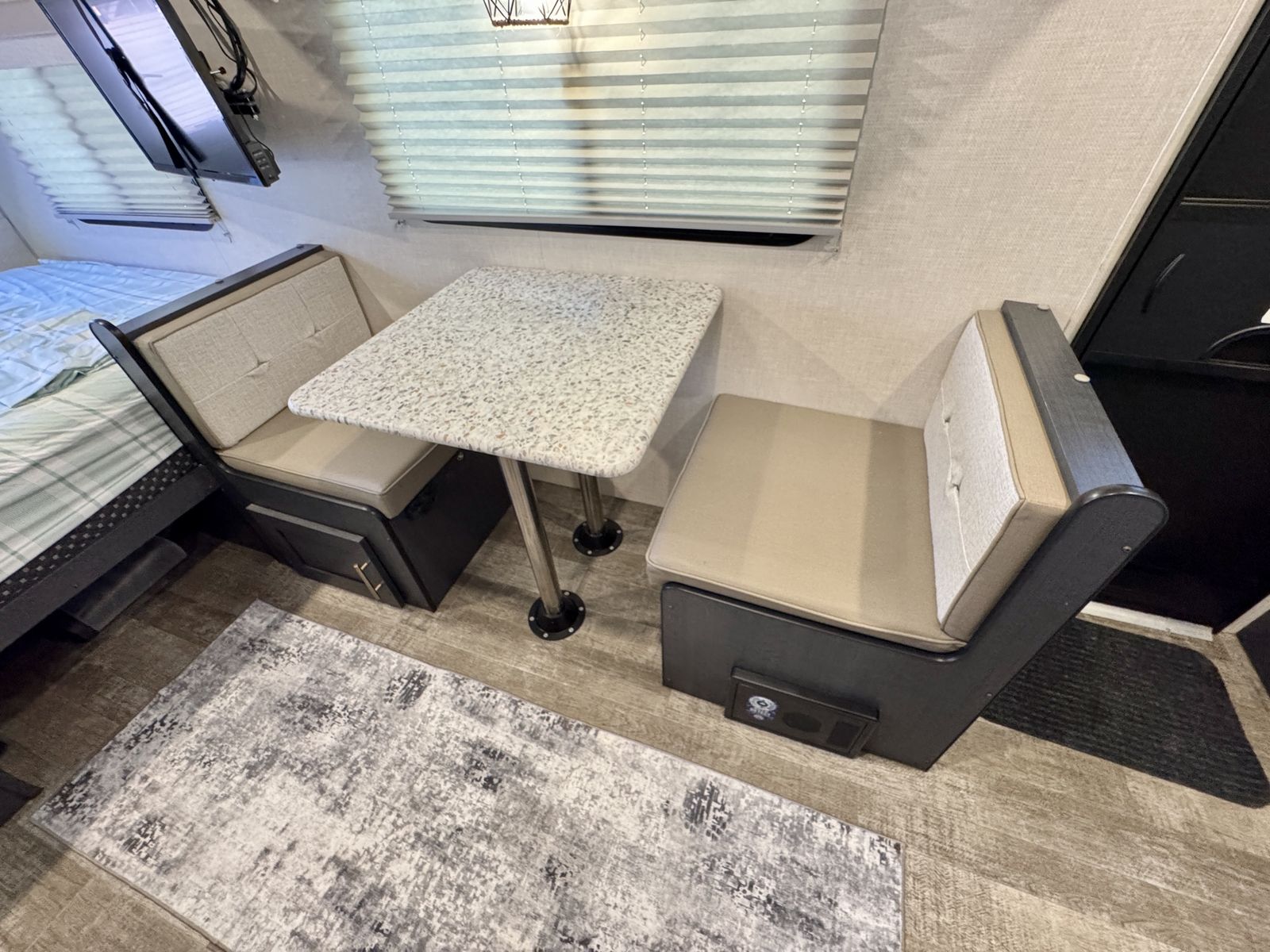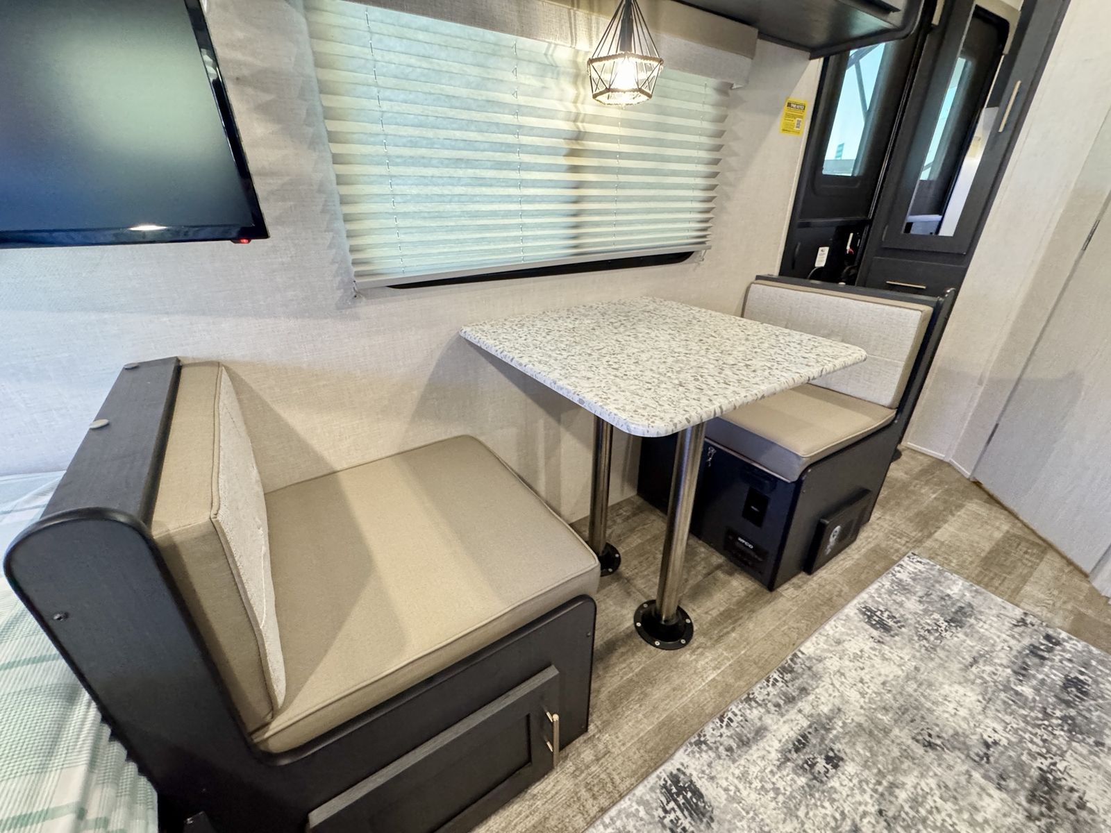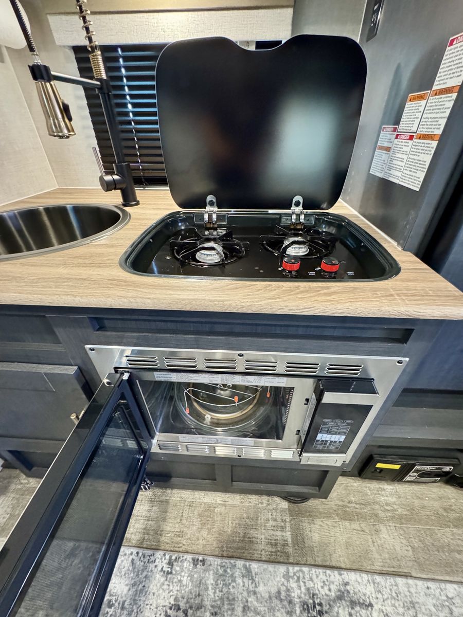 Onboard solar, with panel & controller, Two batteries, electric tongue jack and awning, Kitchen has sink, 3 way fridge, convection oven, Has tons of cabinetry, storage inside and out,