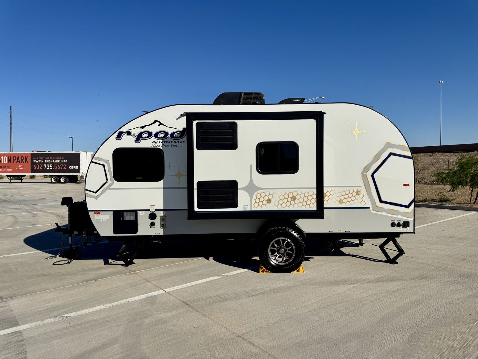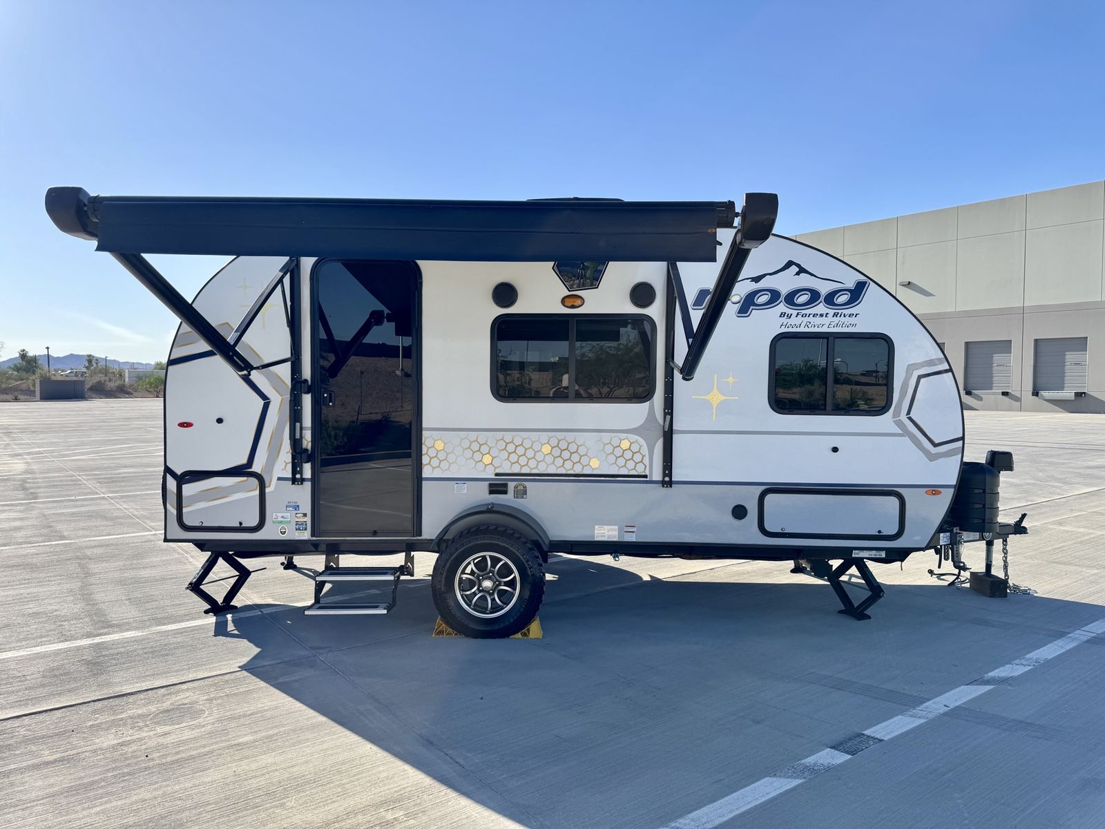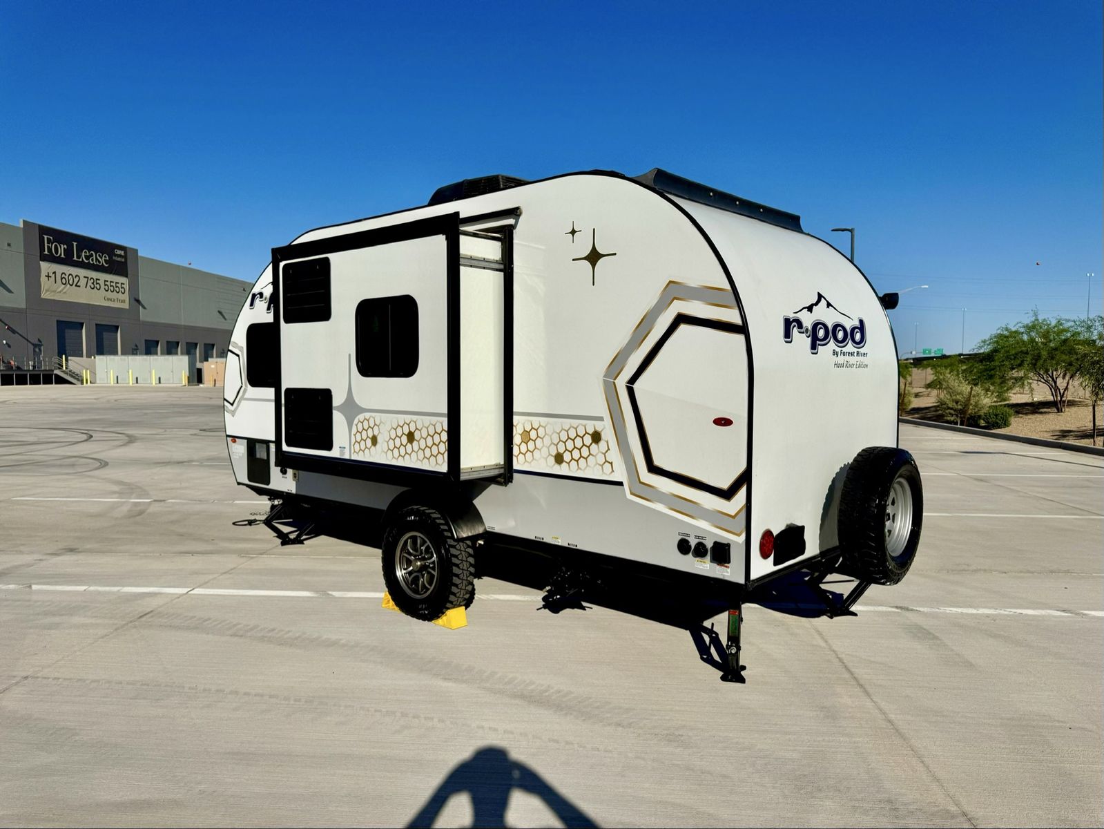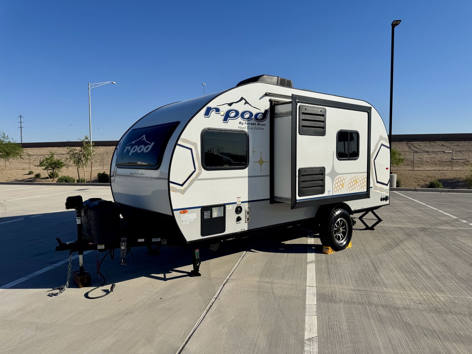 Sleeps up to 3 people, queen size permanent bed, Dinette also converts into a small bed, Recently ceramic coated entire exterior, Paint and decals will stay like new for many years, Never been in any accidents, never lived in, It’s like buying a brand new one, but saving thousands of dollars, and taxes / fees, Plus getting free ceramic coating, and more, Many extras included, back up camera & screen, Sway control / weight distribution full tow package, Tongue lock, leveling blocks, sewer, carrier, etc. Asking $17,900 or best offer, priced to sell quick, I don’t belive there is a better deal on an r pod like this listed anywhere. Clean Arizona title.