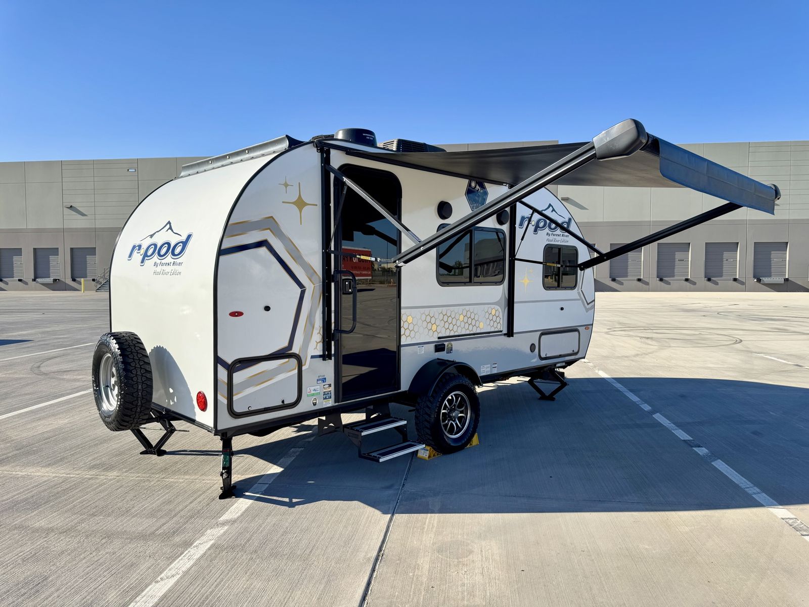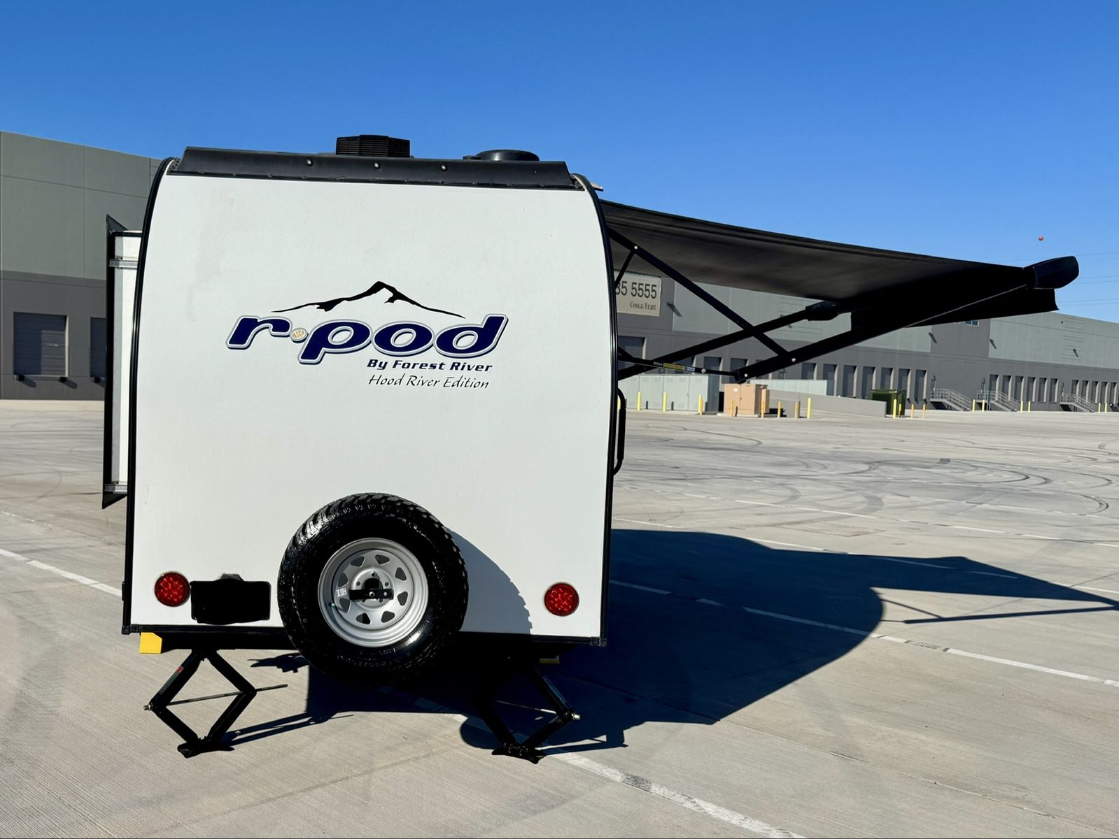 2023 R-Pod, Model 180, by Forest River, 18ft, just under 3,000 lbs dry, easy to pull, Perfect couples coach if your into exploring, Like a scamp or a casita but built to wander, It’s a hood river edition, so it’s factory lifted, Has factory upgraded off-road tires, Has tpms tire pressure sensors, Heated and sealed under belly, heated tanks, Can tow it with almost any small pickup or suv,