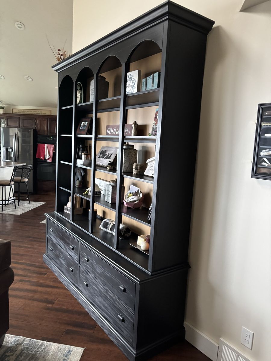 PayPalThis charming Magnolia Home Furniture Vienna cupboard base and chimney hutch can serve many functions and will look amazing in your dining room or anywhere you choose to put this piece in your home.