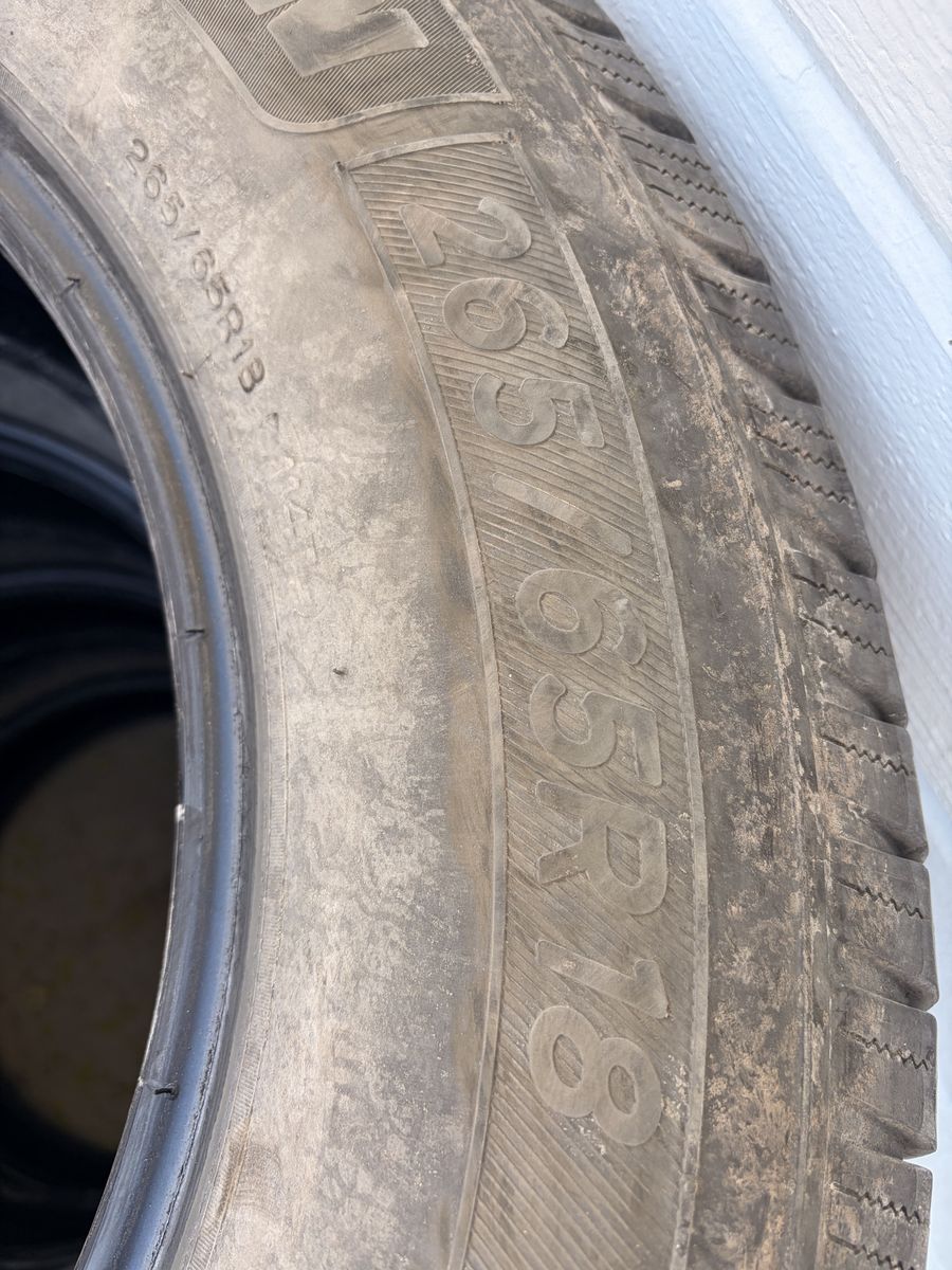 VenmoSize 265/65R18 tires. Good amount of tread left, just got bigger tires and don’t need these anymore. Asking 300 for all 4 tires.