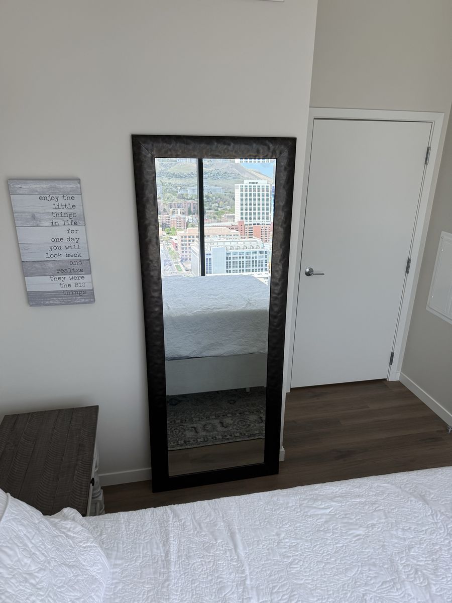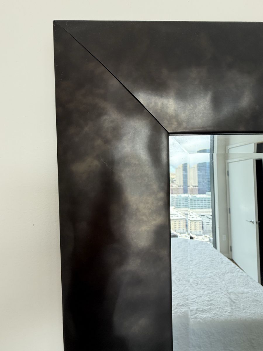ApplePayHeavy duty and great condition. Standing mirror is 6 feet tall and 2 feet wide, surrounded by a 4 inch gunmetal frame.