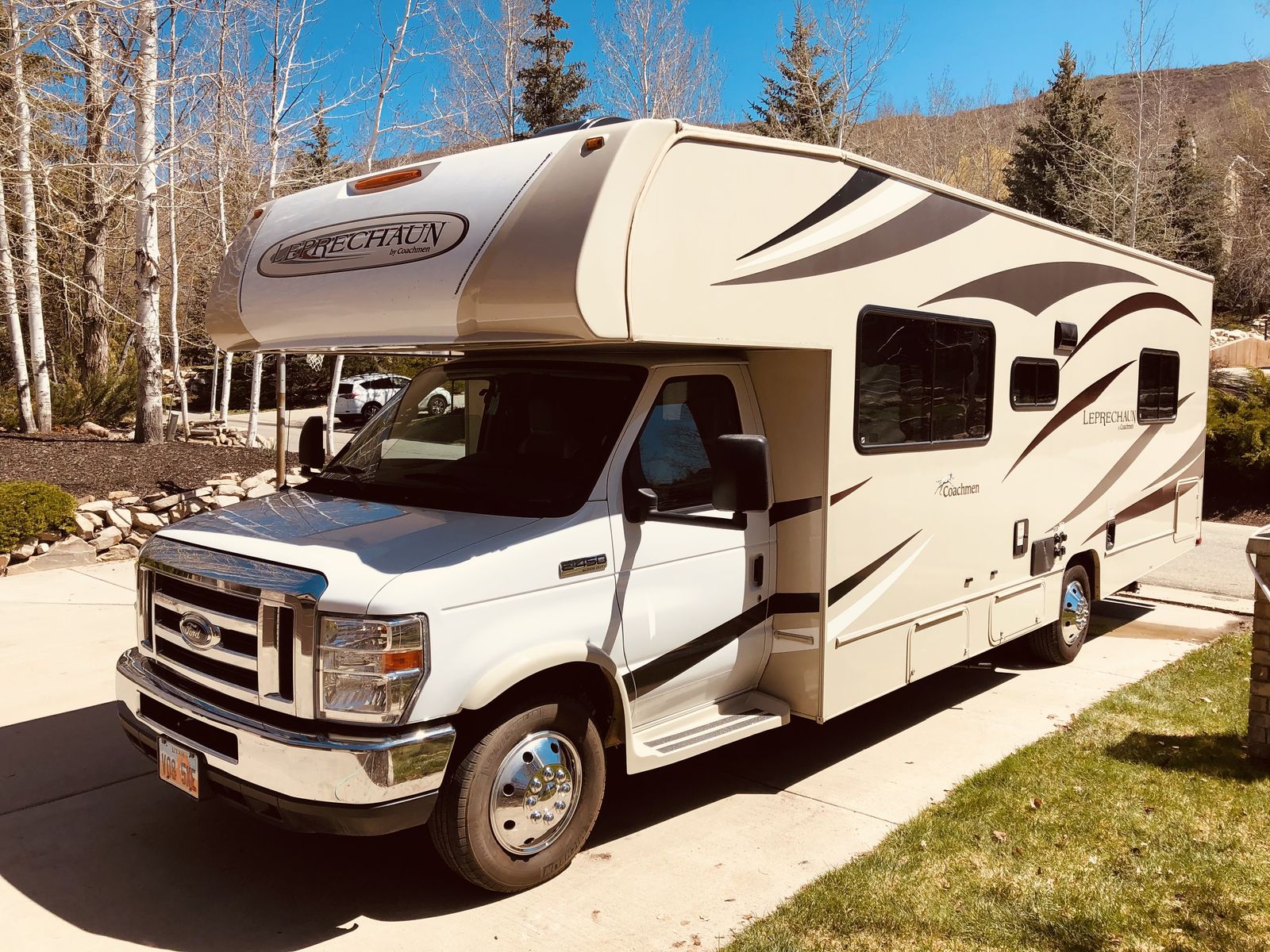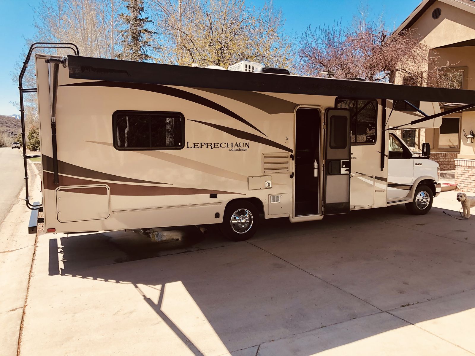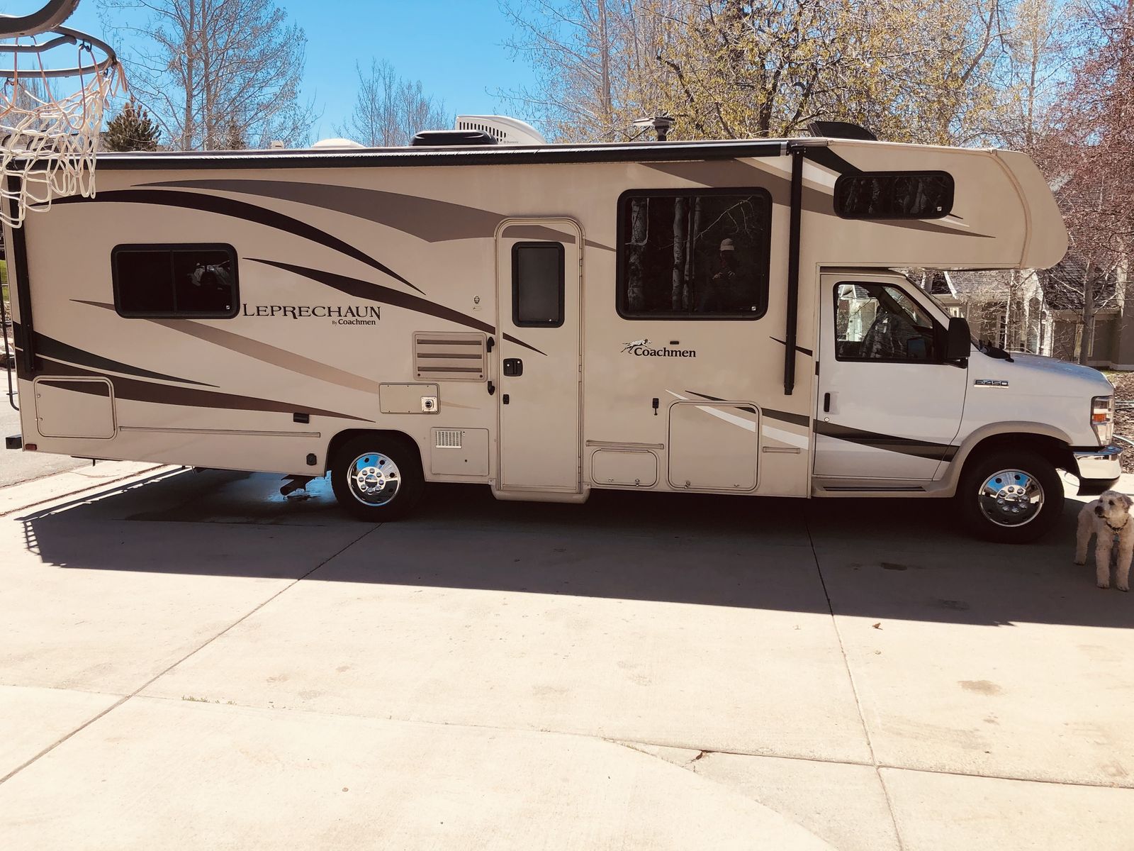 The 2018 Coachmen Leprechaun 271QB is a 29' 6" Class C motorhome built on a Ford E450 chassis with a V10 engine. Designed to sleep up to 6 people, it features a rear walk-around queen bed, a sofa, and a convertible dinette. Key features include a 15,000 BTU A/C, electric awning, and backup camera. We have owned this RV since 2020 and no longer use it as much since our daughter went off to college. It has tons of "garage" storage underneath, an upgraded radio with apple car play or android auto capability, a portable solar panel to keep the coach batteries topped off. This is the best way to venture out into the great outdoors with your family!