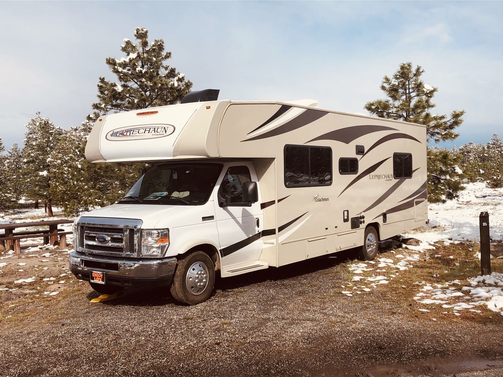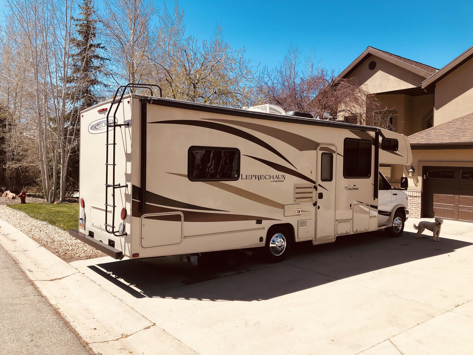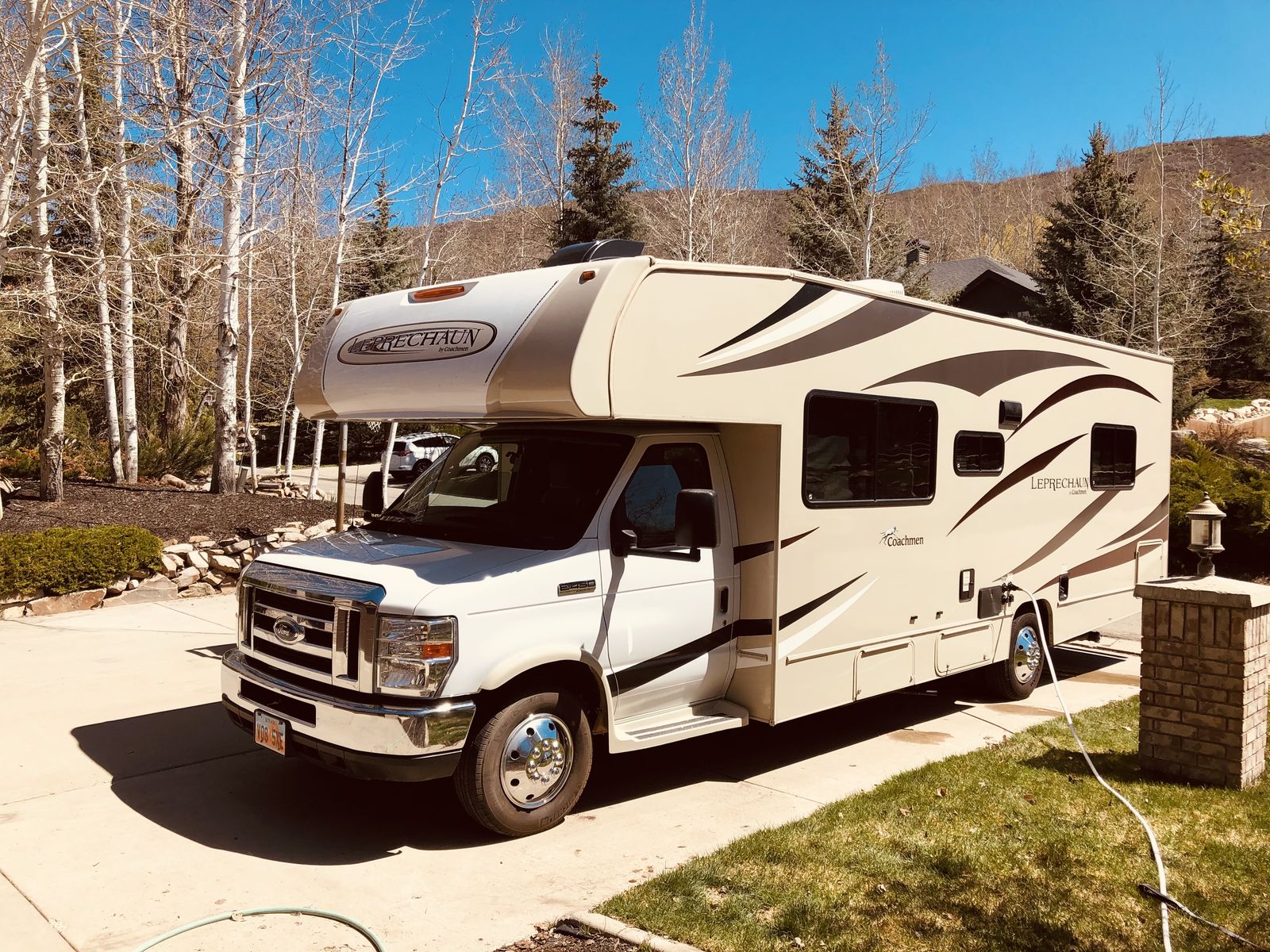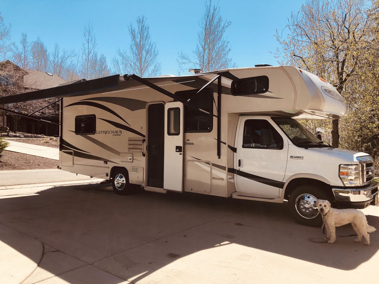 The 2018 Coachmen Leprechaun 271QB is a 29' 6" Class C motorhome built on a Ford E450 chassis with a V10 engine. Designed to sleep up to 6 people, it features a rear walk-around queen bed, a sofa, and a convertible dinette. Key features include a 15,000 BTU A/C, electric awning, and backup camera. We have owned this RV since 2020 and no longer use it as much since our daughter went off to college. It has tons of "garage" storage underneath, an upgraded radio with apple car play or android auto capability, a portable solar panel to keep the coach batteries topped off. This is the best way to venture out into the great outdoors with your family!