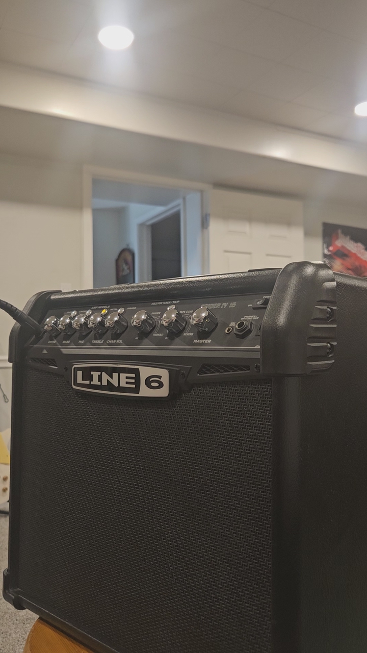 VenmoLine 6 practice amp. 15 watt. very loud. four different amp models from clean to insane lots of different options for a different sound chorus. Reverb, flanger, delay, perfect working condition just upgraded to a bigger amp