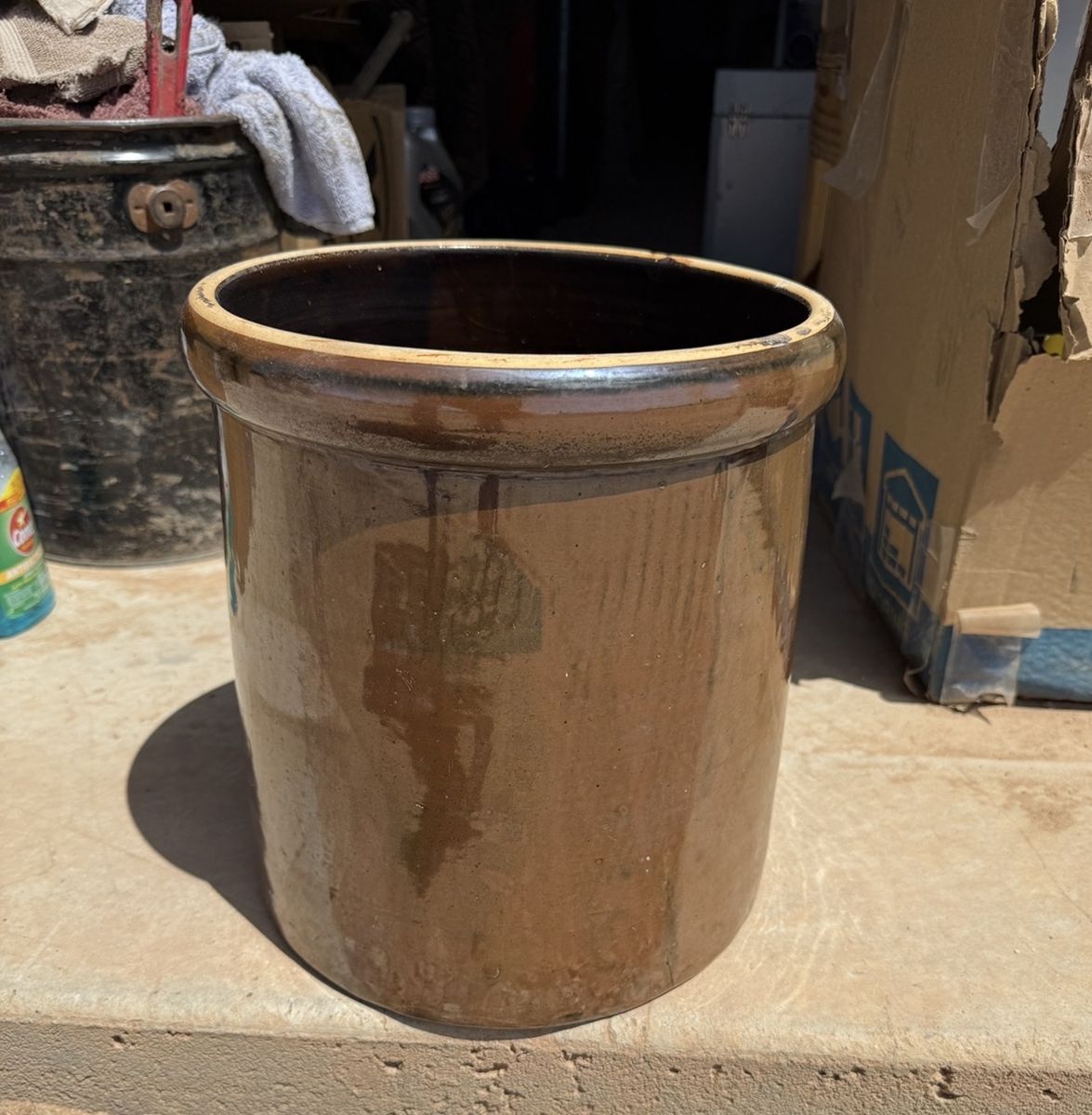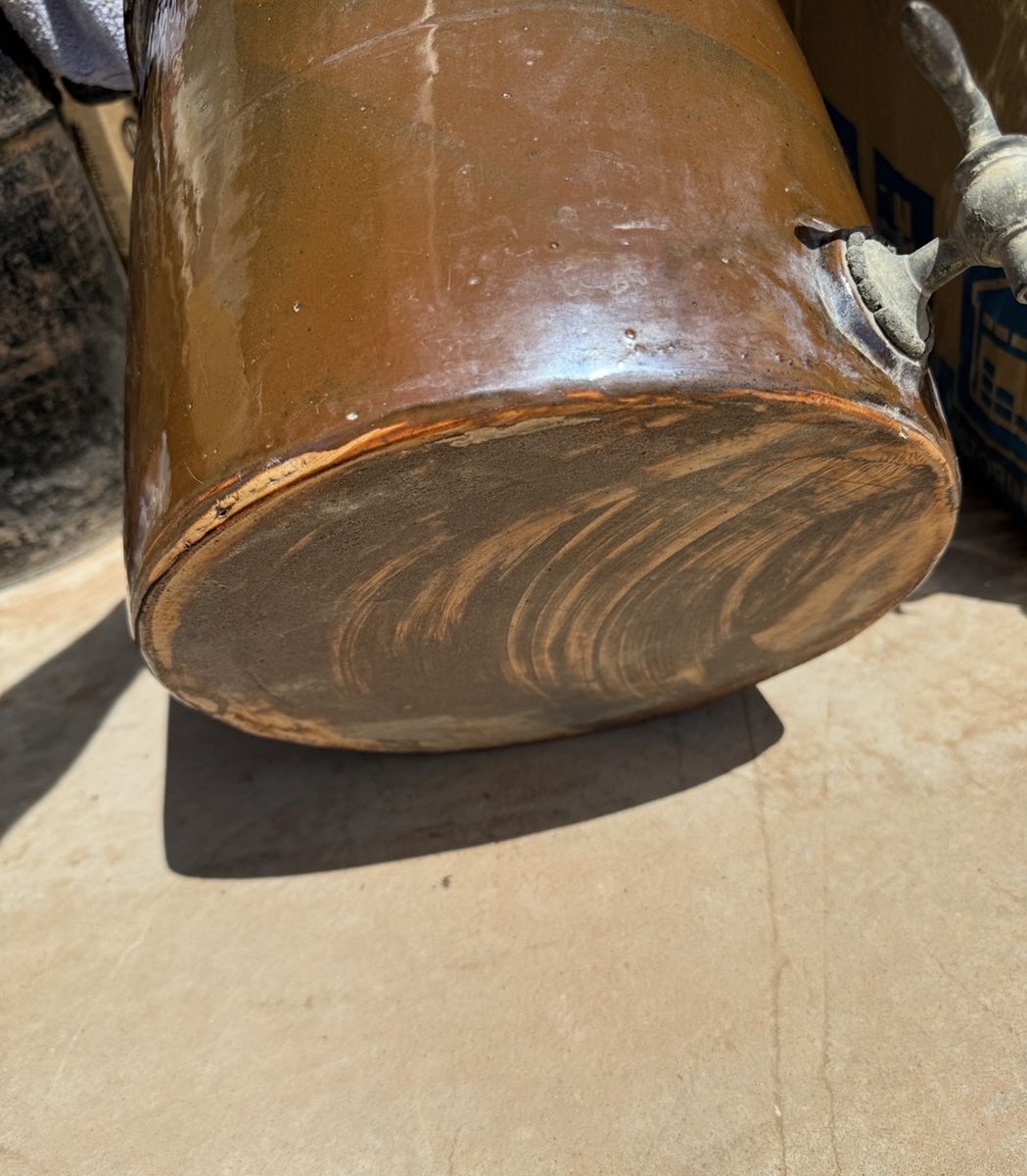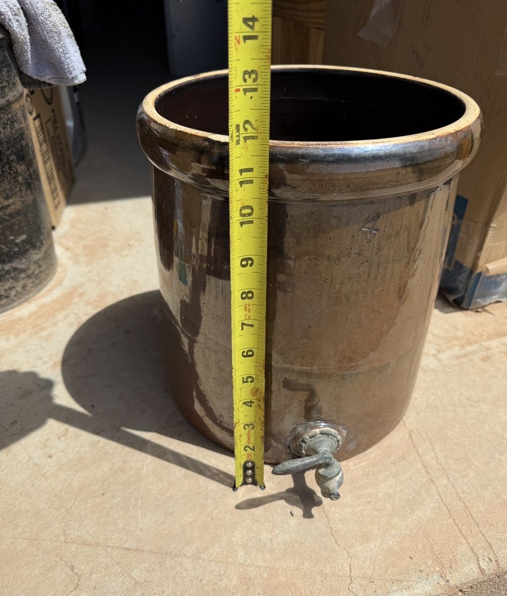 ApplePayAuthentic late 19th century 4 gallon water cooler. This is a purpose built water-cooler, not a modified crock. Albany slip glaze inside and out. Original brass spigot. Believed to come from the Ohio River valley potteries. Designed as a utilitarian liquid vessel. No cracks or repairs. I do not have the lid.