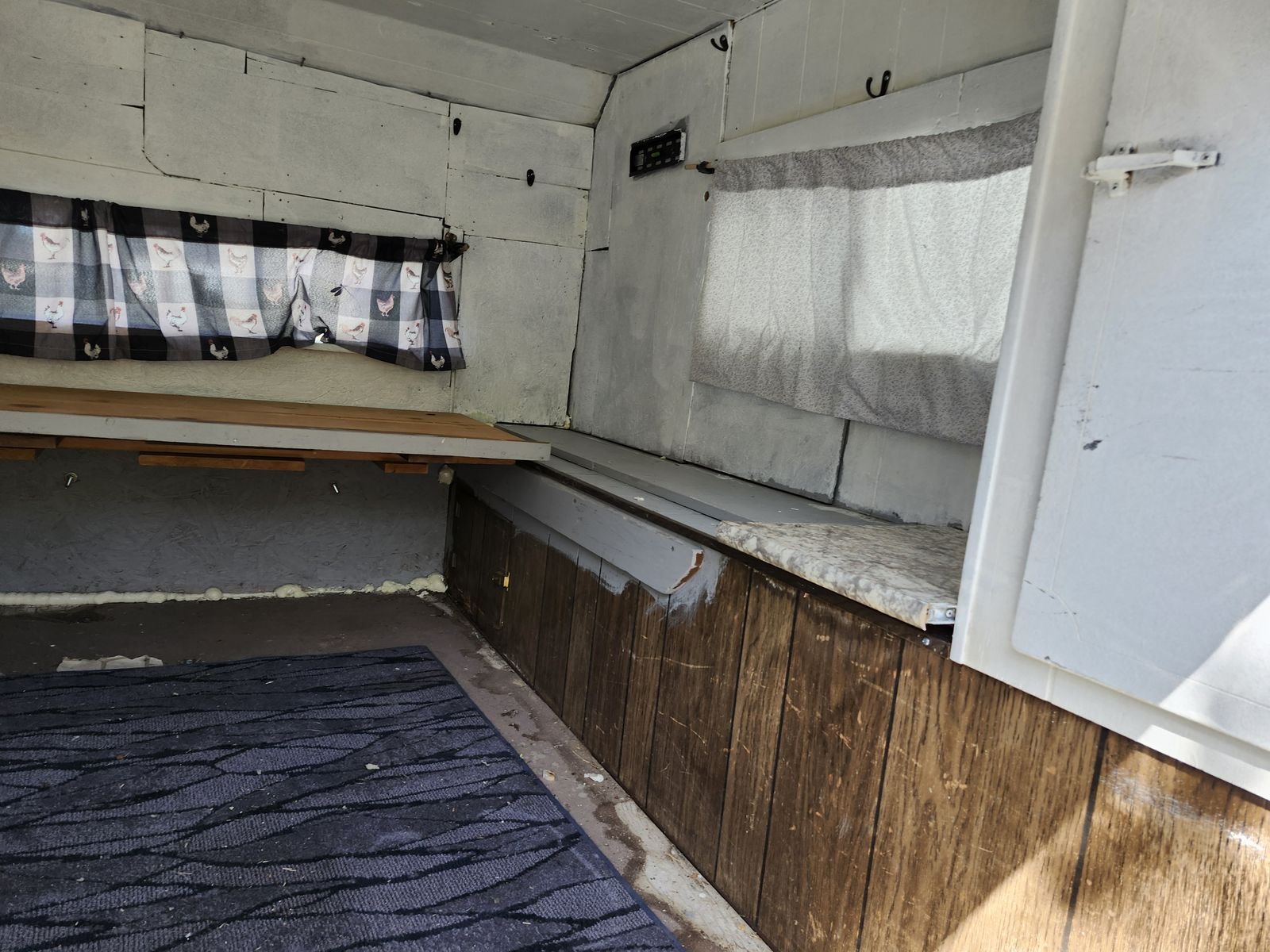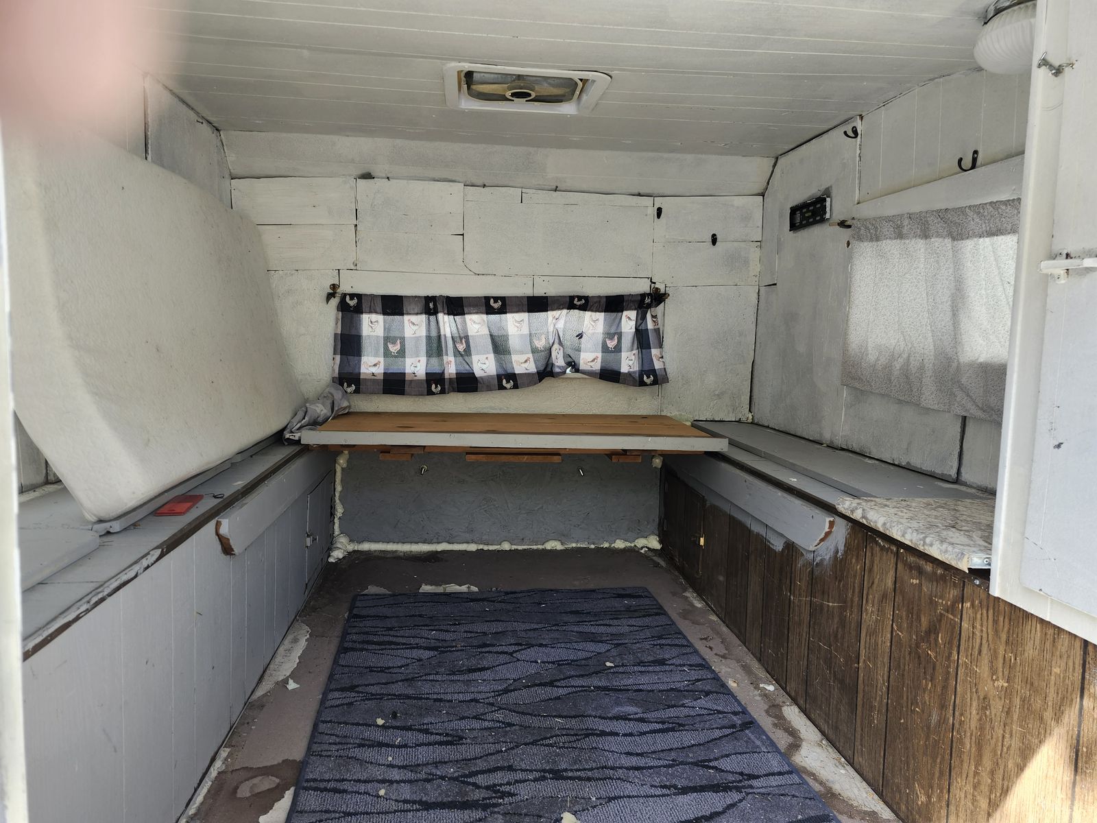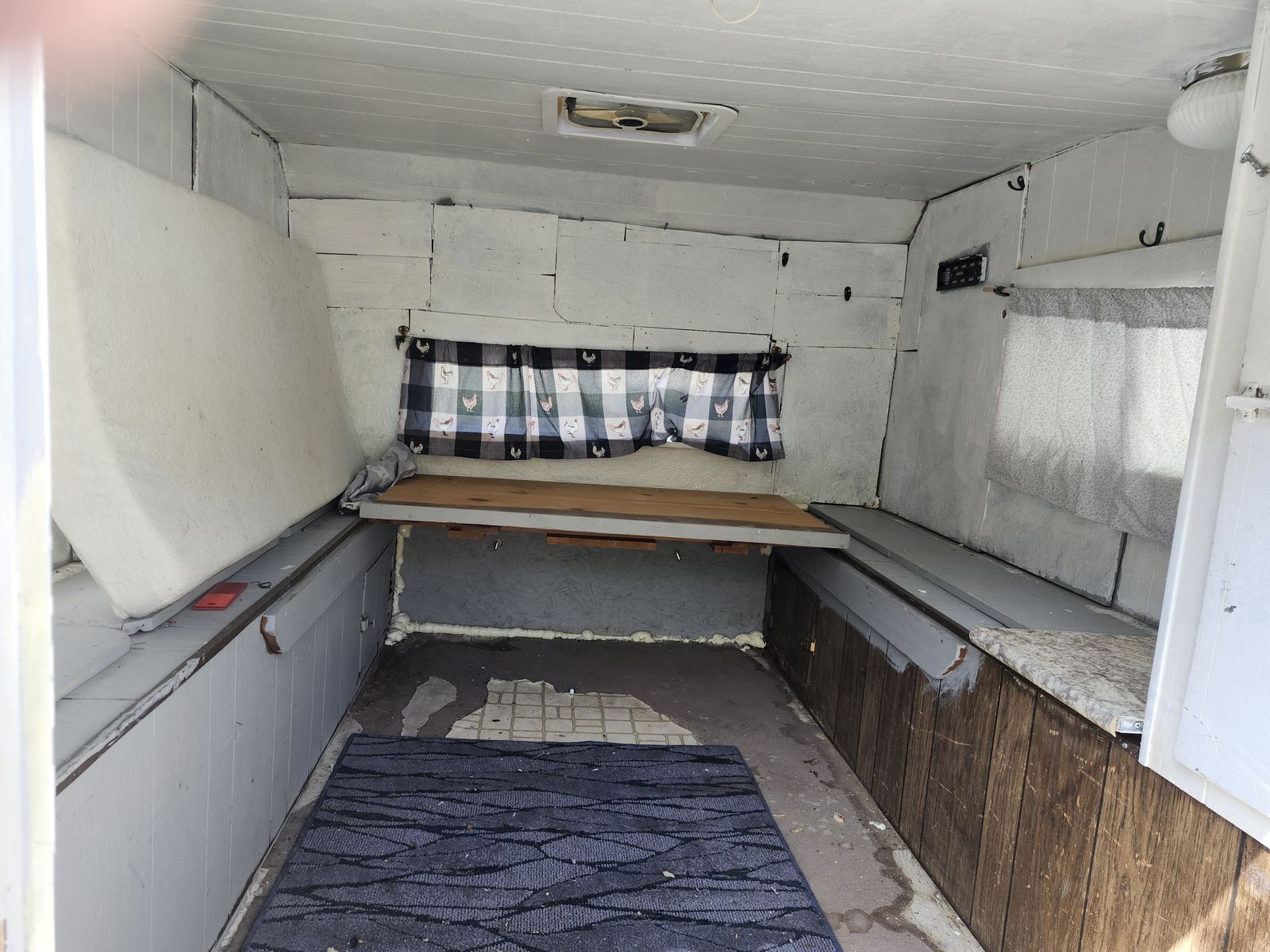 Venmo'68 truck bed trailer with a fishing camper. Has new tires and leaf springs. Was working to have a small camper to visit kids. Life showed up and I need the money. Would like to recover for tire cost but will take best offer.