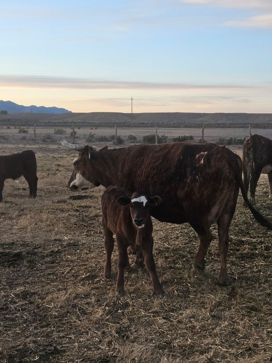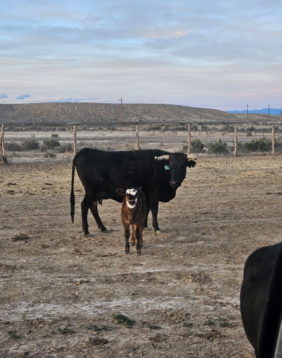 Have 6 pairs (soon to be 7) she will calve anytime now. Calves are out of a F1 black braford bull (see photo) so far 5 heifer calves and 1 black bull calf. Located in Huntington Utah. Will be in the corral and ready to ship on 4-25