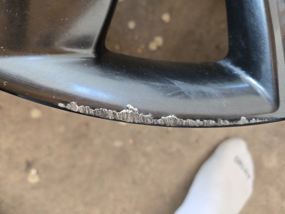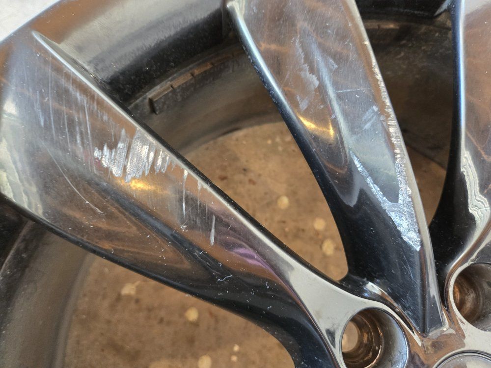 Two of the four wheels are in like new condition with no scratches, dents, or curb rash. One has minor curb rash shown in the picture, and the last one has more moderate rash but no damage that would compromise integrity. All this damage is repairable.