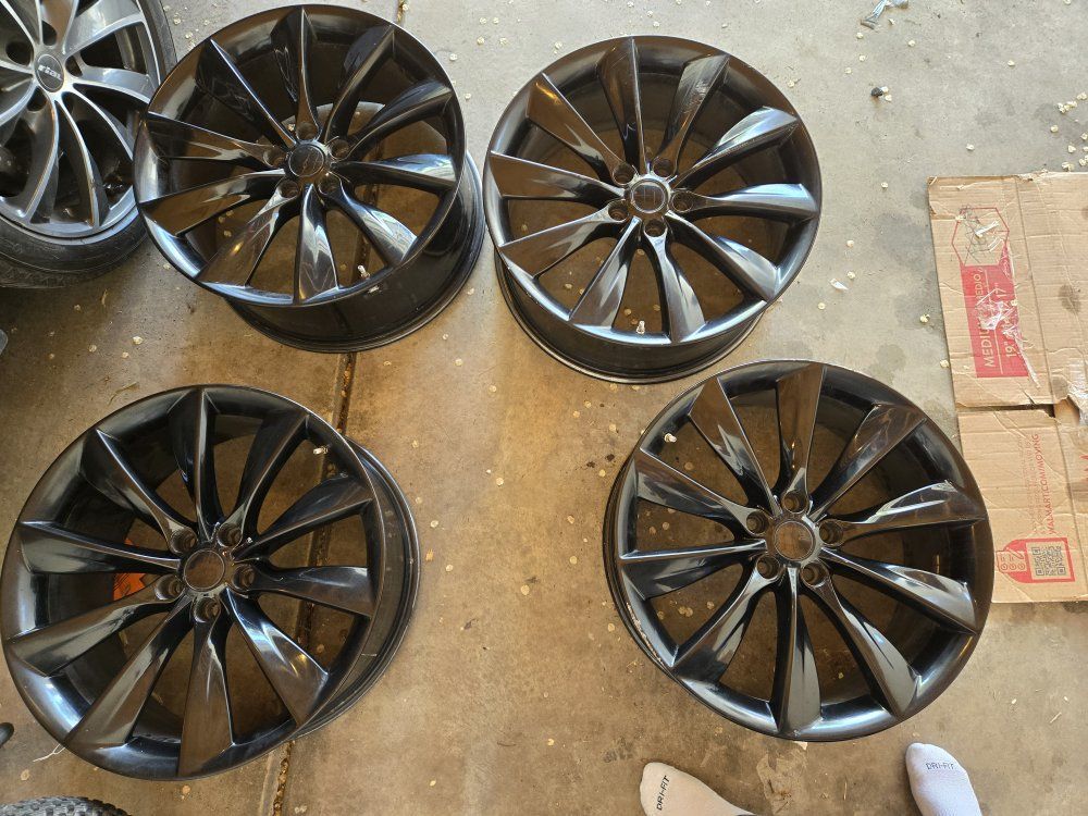 Zelle5x120mm, 21" wheels from a Tesla model S. They come with the tire pressure monitoring sensors. They are used on both the S and X across generations. They will also fit a number of Acuras, BMWs, Land Rovers, Chevrolets, Hondas, and Cadillacs.