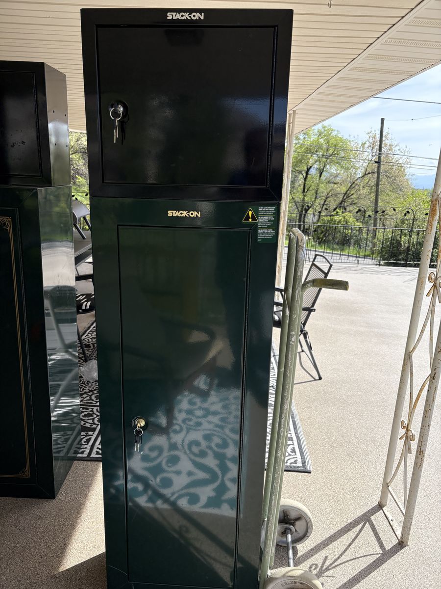2-Stack-On Pistol/Ammo Security Cabinets. 18" Tall, x 21" Wide x 10" Deep. (Fit on both of the above Long Gun Cabinets. $55 each.