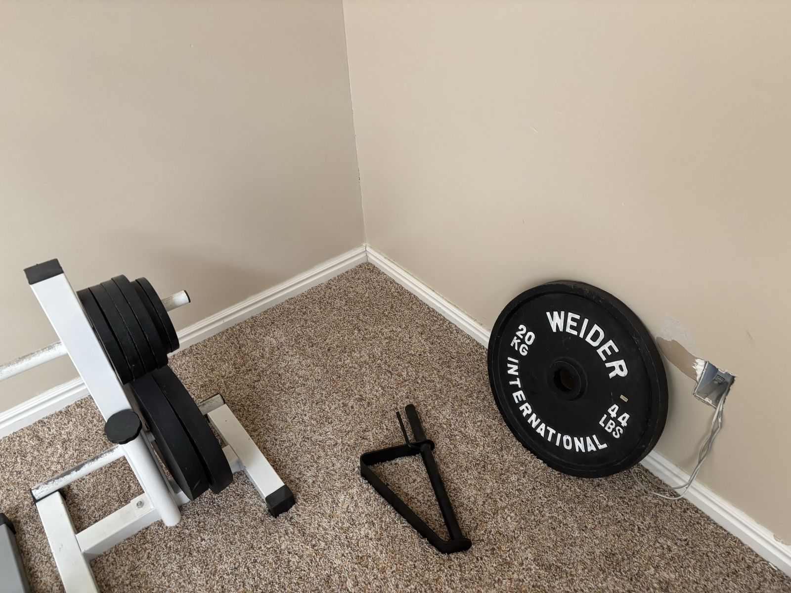 PayPalRack, bench, Olympic bar, plates, lat pulldown, EZ curl bar, dumbbells, and attachments. Everything works great. Pickup only.