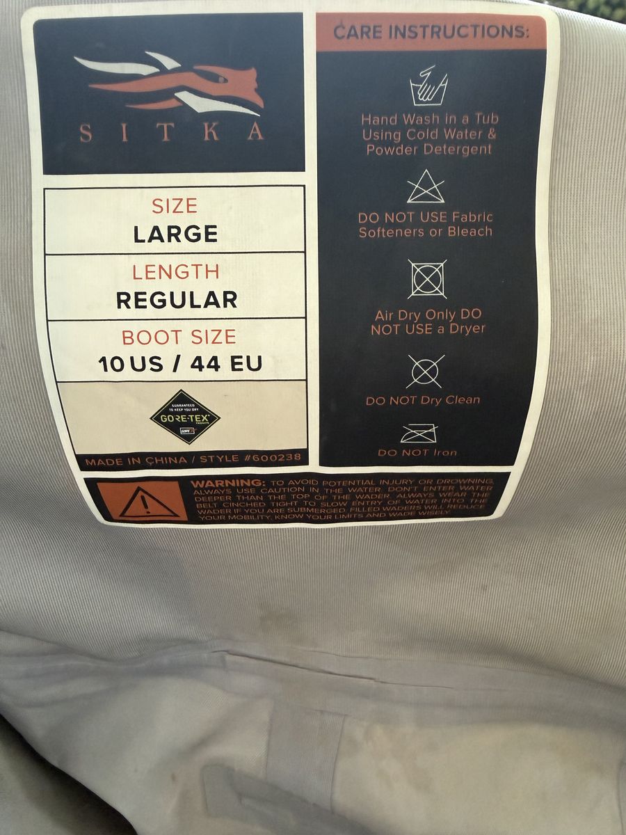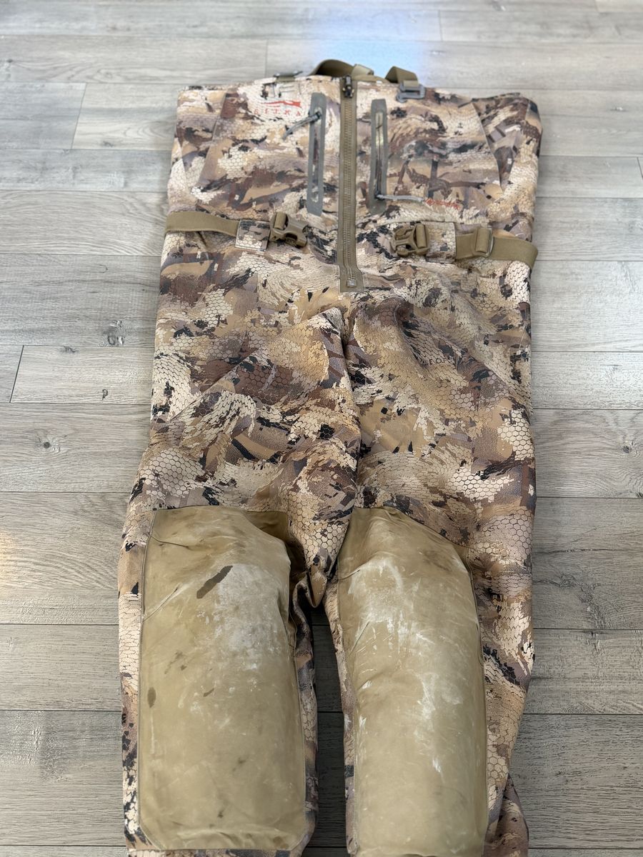 Sitka waders two full duck seasons on them, they are in excellent condition $550 firm men's large 10 boot.