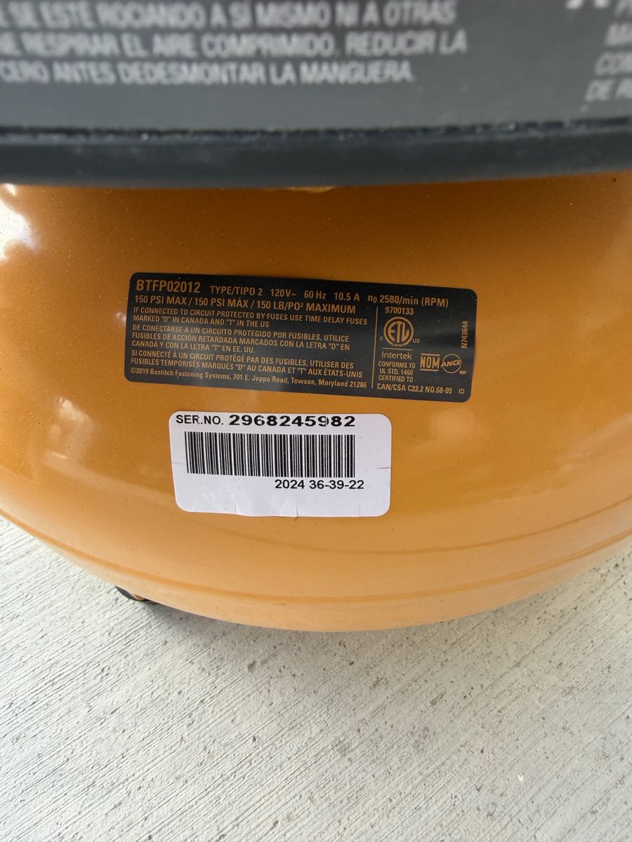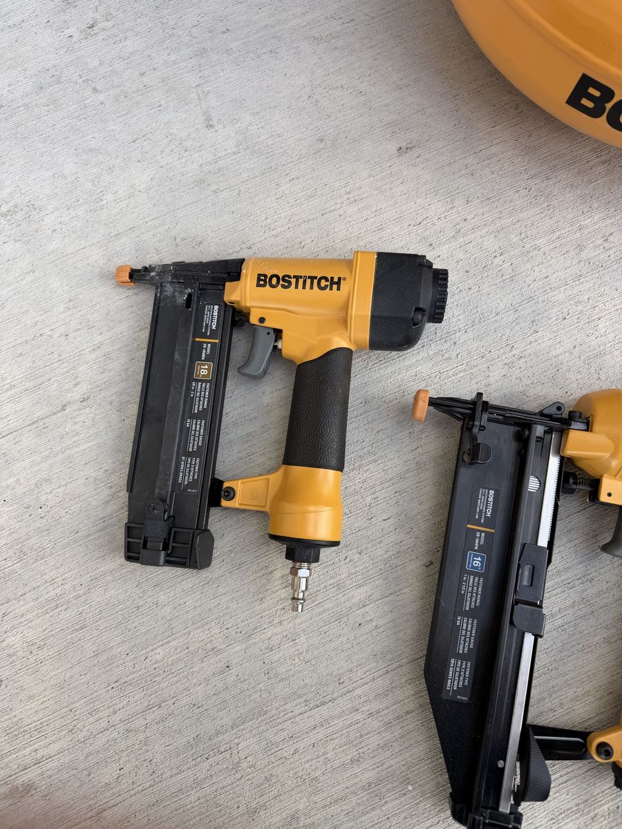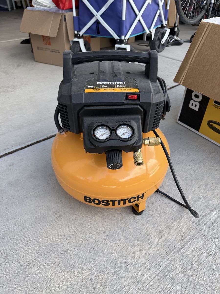 VenmoBostitch 6 gallon air compressor with full nail gun setup. Everything is in excellent condition and has only been used 1–2 times.