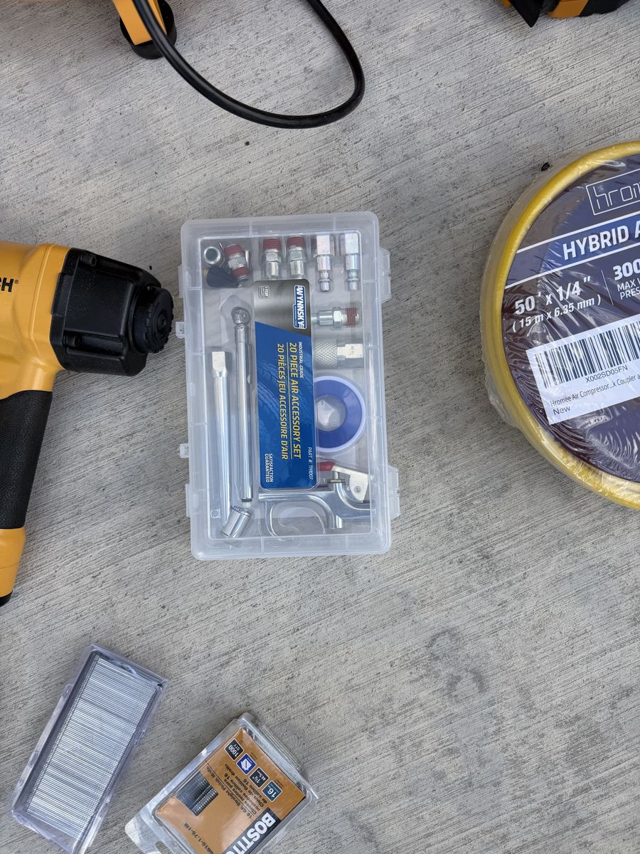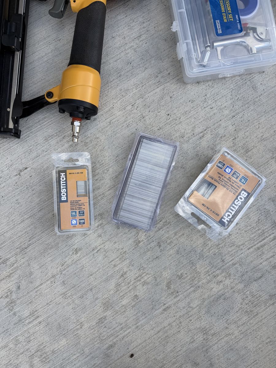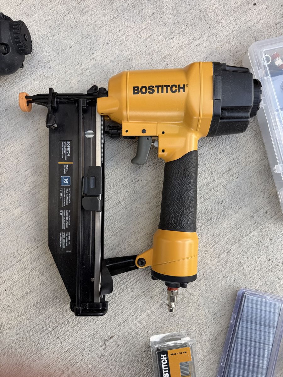 VenmoBostitch 6 gallon air compressor with full nail gun setup. Everything is in excellent condition and has only been used 1–2 times.
