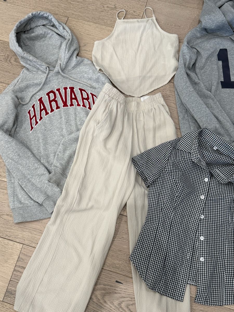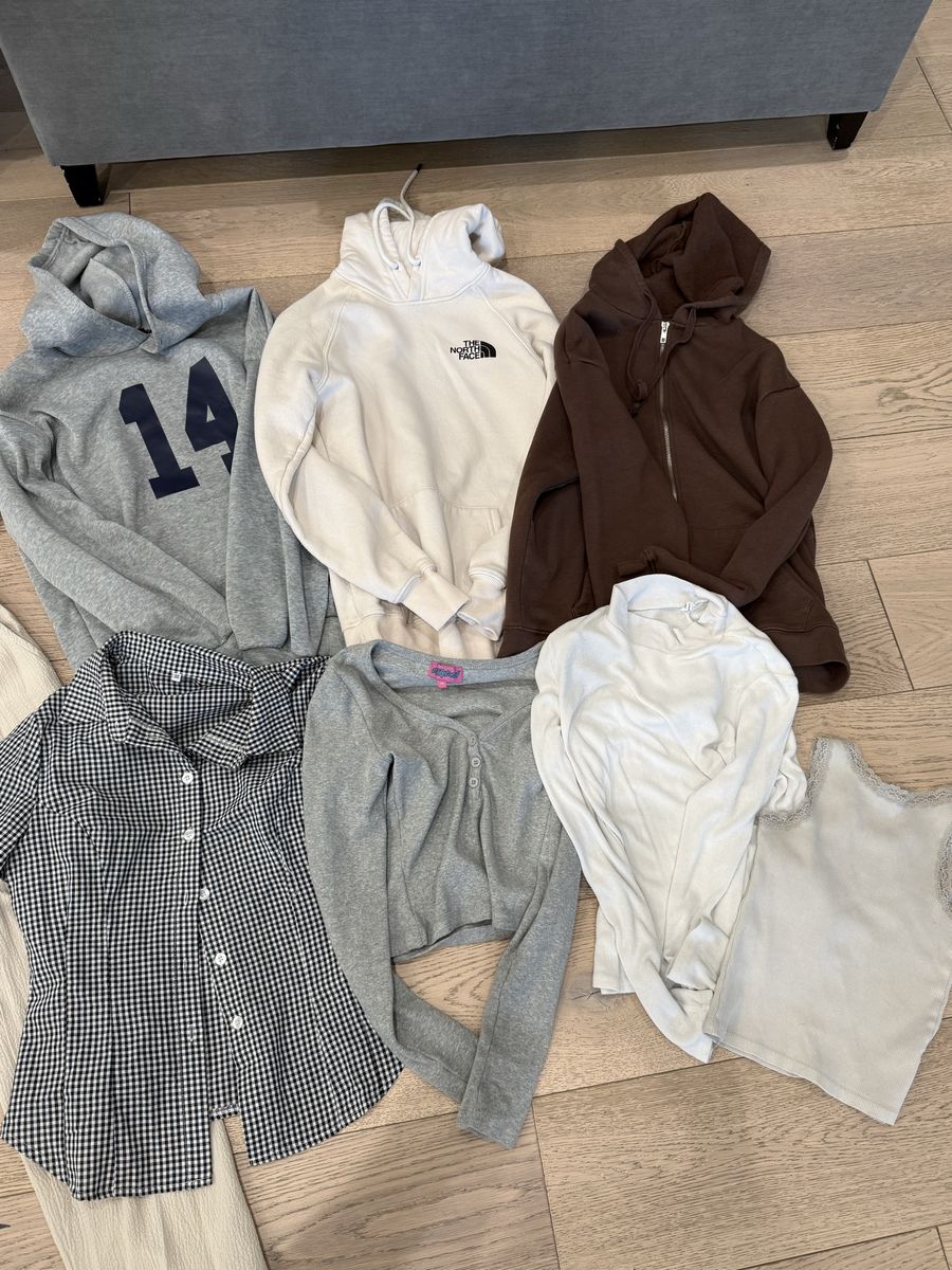 VenmoIncludes: (4) hoodies: -Harvard H&M XS -Cream North Face XS -14 SHEIN Small -Brown zip up Full Tilt size small (1) H&M cream 2 piece set size 12Y (1) collared short sleeve collared button up XS (1) gray long sleeve XS edikted (1) cream turtleneck 14Y shein (1) cream tank lace Full Tilt XS