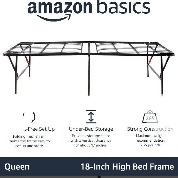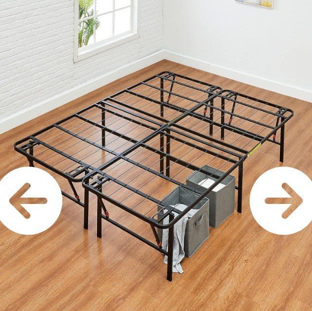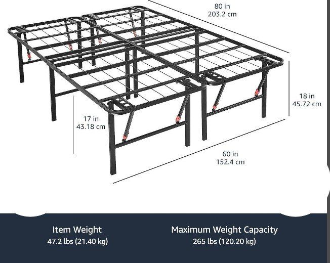 VenmoSTURDY SUPPORT: This queen bed frame, with no box spring needed, provides a noise-free, supportive foundation. The queen size platform bed frame allows your mattress to stay in place comfortably DURABLE DESIGN: This queen size bed frame metal crafted from durable steel, has reliable strength and longevity EASY SETUP: This queen bed frame with storage offers a hassle-free, tool-free setup. With the folding mechanism, this queen size bed frame is easy to store or move through doorways AMPLE STORAGE: The metal queen bed frame allows you to maximize space with 17 inches of vertical clearance and convenient under-bed storage IMPRESSIVE WEIGHT CAPACITY: Twin size supports 350 lbs; Full, Queen, King & California King sizes hold up to 700 lbs total (350 lbs per person max for all sizes)