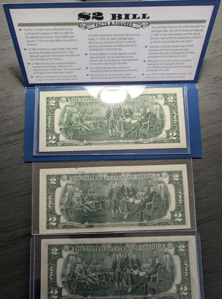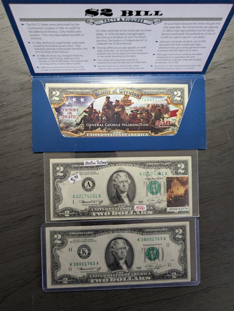 -Unique 1976 $2 bills [all 3]. ($30) {top colored $2( $15), $2 bill with stamp $10 and $2 bill ($5)