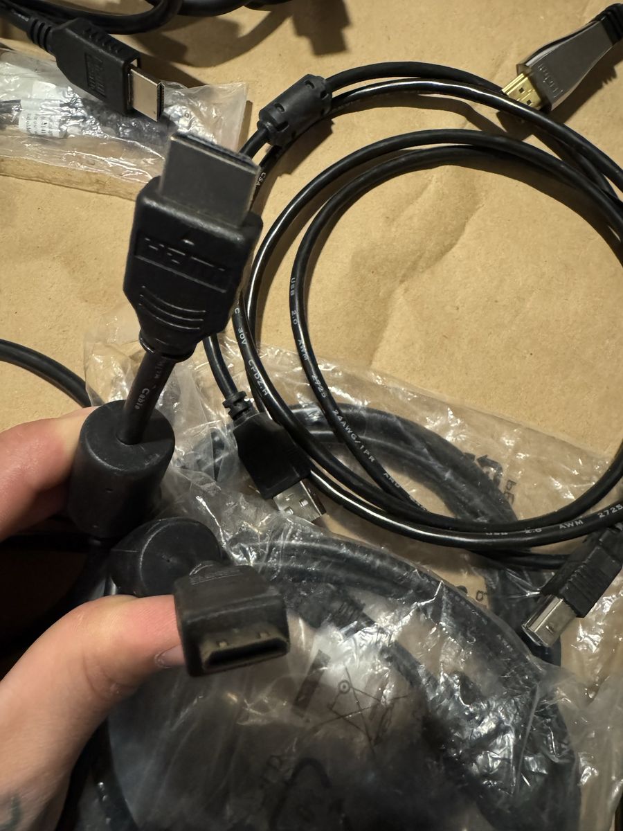 4 HDMI, 2 mini HDMI to regular HDMI, 7 ethernet cables, 2 computer monitor cables, and more. 1 cable for $5 each, or all 15 for $30.