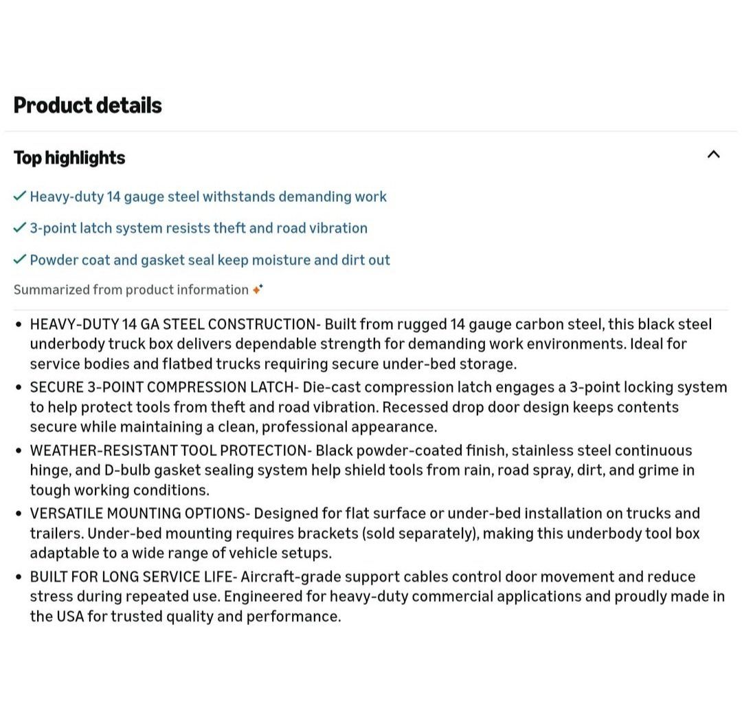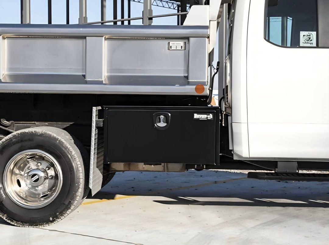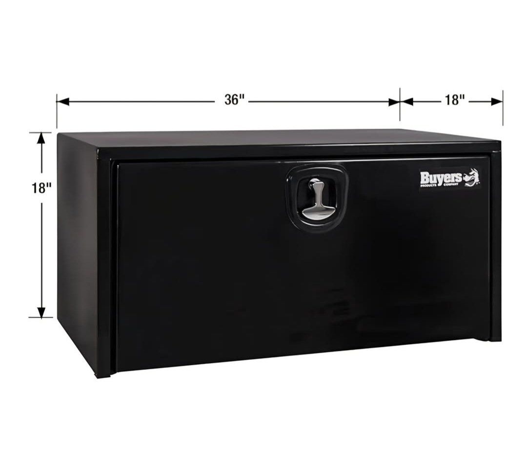 Buyers 1732305,18x18x36 Inch Black Steel Underbody Truck Box with 3‑Point Compression Latch, 14 Ga Powder‑Coated Tool Box for Flatbed & Service Body Trucks, Made in USA