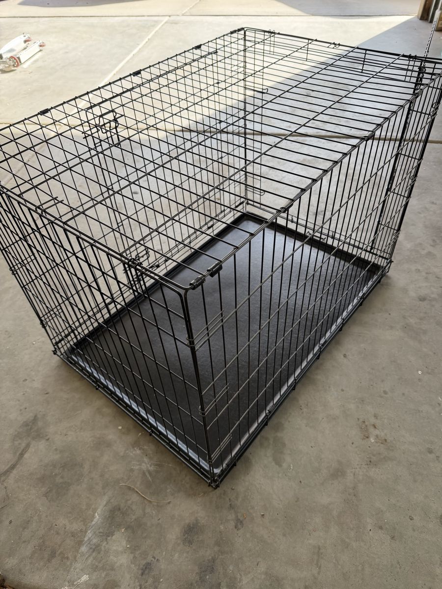 Metal dog kennel/cage for sale. Come pick it up. Length (depth) is 42” Width is 28” Height is 30”