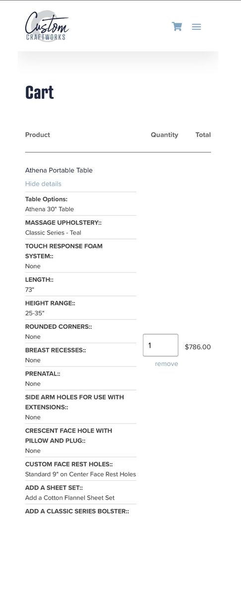 ApplePayCustom Craftworks Portable Massage Table (Athena)