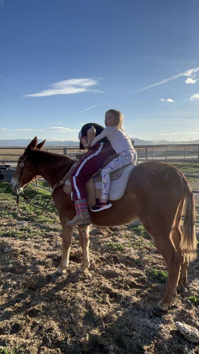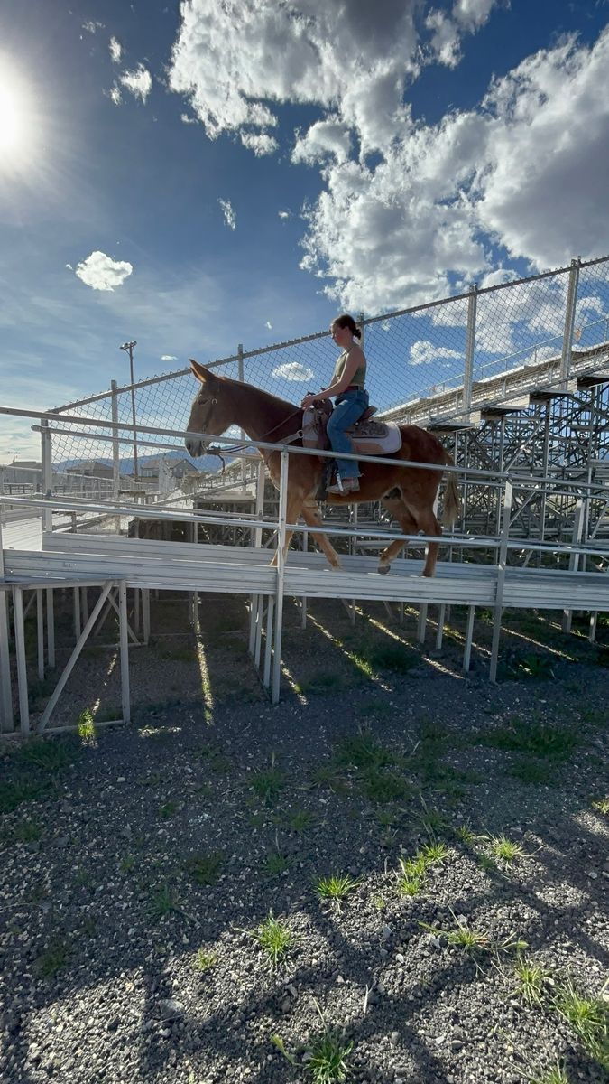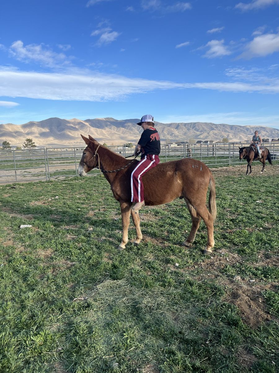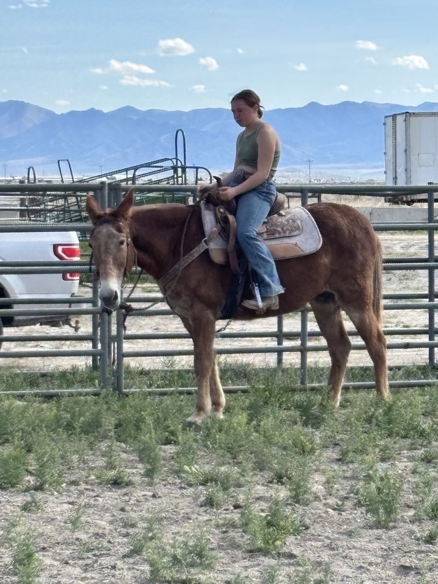 John Boy is a 12-year-old “been there done that” and kid safe Mule, but big enough for adults and heavy loads. He stands about 14.2 hands and has plenty of strength for any size of rider and is safe for children. Must see video – He doesn’t hesitate to do anything or go anywhere… We even ride him up the aluminum bleachers. He has no bad habits; spook, buck, bite, etc. He loads in the trailer well and LOVES people. He likes to lead or follow and has a nice gate to his walk (he moves out really nice at a steady pace) He is definitely more than just a ride-on animal (he is so smart and loves to be hugged and cuddled). The kids all pile on him at the same time and hang all over him. He is amazing on the trails, packing, hunting, or just pleasure riding. He is fully aware and careful without bocking at anything. Nothing rattles him (cars, traffic, loud noises, animals, birds, deer, tight spots, etc.). If you want to be safe, your kids safe, etc. he’s worth the investment. He has very hard black feet and doesn’t require shoes. Please call or text Brett (801) 201-8754. Did you know: Mules live and work longer than horses (into their 30’s) They can pack more weight They are easier to keep fat They can eat less quality food including straw Some don’t need to be shod https://youtube.com/shorts/dcP0BY4CAsQ?si=rx0-2wKjQRefA9p5 https://youtube.com/shorts/842l3DqCGyA?si=7TBx16sq4mvo5XH5 https://youtube.com/shorts/xUW_tqgKapo?si=dGBv4SJYU4yXivId https://youtube.com/shorts/o4wvAApNduk?si=G60P6slnvim0gYQ9 https://youtube.com/shorts/BM8MOrEYBX8?si=IgqPpNbZ5d8_1dpX