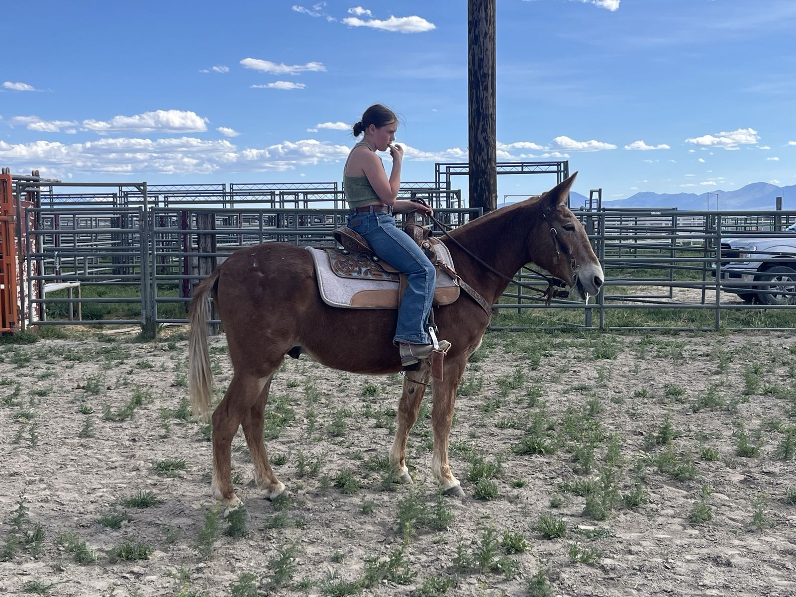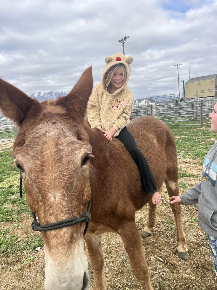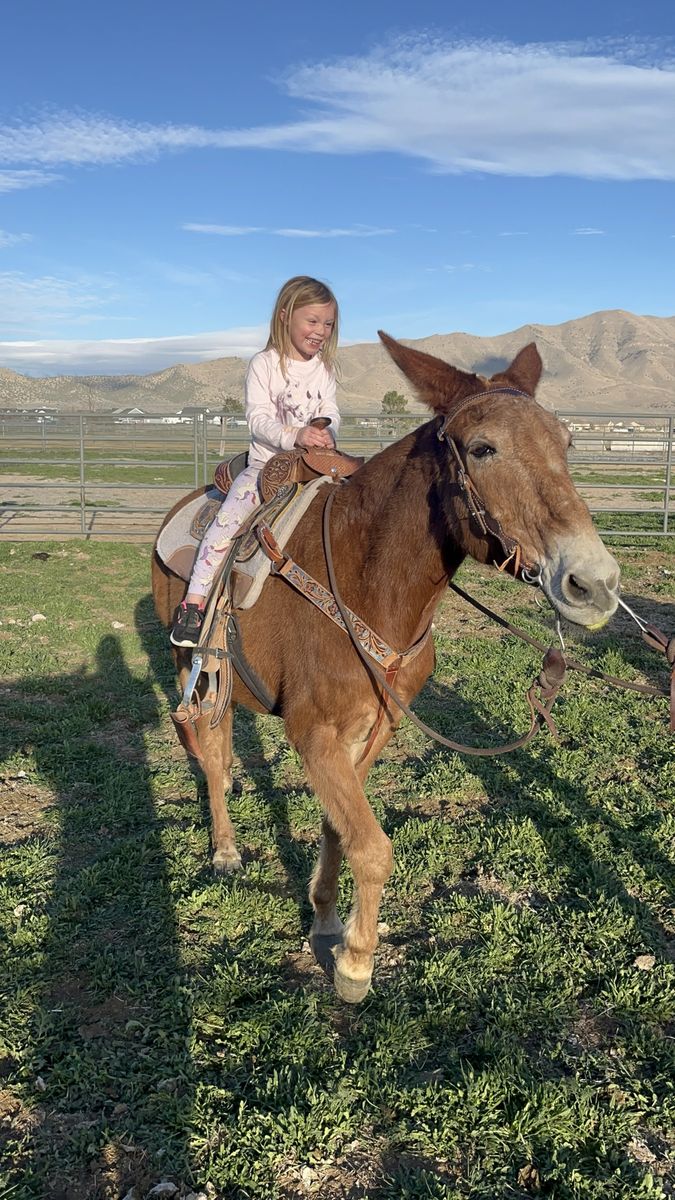 John Boy is a 12-year-old “been there done that” and kid safe Mule, but big enough for adults and heavy loads. He stands about 14.2 hands and has plenty of strength for any size of rider and is safe for children. Must see video – He doesn’t hesitate to do anything or go anywhere… We even ride him up the aluminum bleachers. He has no bad habits; spook, buck, bite, etc. He loads in the trailer well and LOVES people. He likes to lead or follow and has a nice gate to his walk (he moves out really nice at a steady pace) He is definitely more than just a ride-on animal (he is so smart and loves to be hugged and cuddled). The kids all pile on him at the same time and hang all over him. He is amazing on the trails, packing, hunting, or just pleasure riding. He is fully aware and careful without bocking at anything. Nothing rattles him (cars, traffic, loud noises, animals, birds, deer, tight spots, etc.). If you want to be safe, your kids safe, etc. he’s worth the investment. He has very hard black feet and doesn’t require shoes. Please call or text Brett (801) 201-8754. Did you know: Mules live and work longer than horses (into their 30’s) They can pack more weight They are easier to keep fat They can eat less quality food including straw Some don’t need to be shod https://youtube.com/shorts/dcP0BY4CAsQ?si=rx0-2wKjQRefA9p5 https://youtube.com/shorts/842l3DqCGyA?si=7TBx16sq4mvo5XH5 https://youtube.com/shorts/xUW_tqgKapo?si=dGBv4SJYU4yXivId https://youtube.com/shorts/o4wvAApNduk?si=G60P6slnvim0gYQ9 https://youtube.com/shorts/BM8MOrEYBX8?si=IgqPpNbZ5d8_1dpX