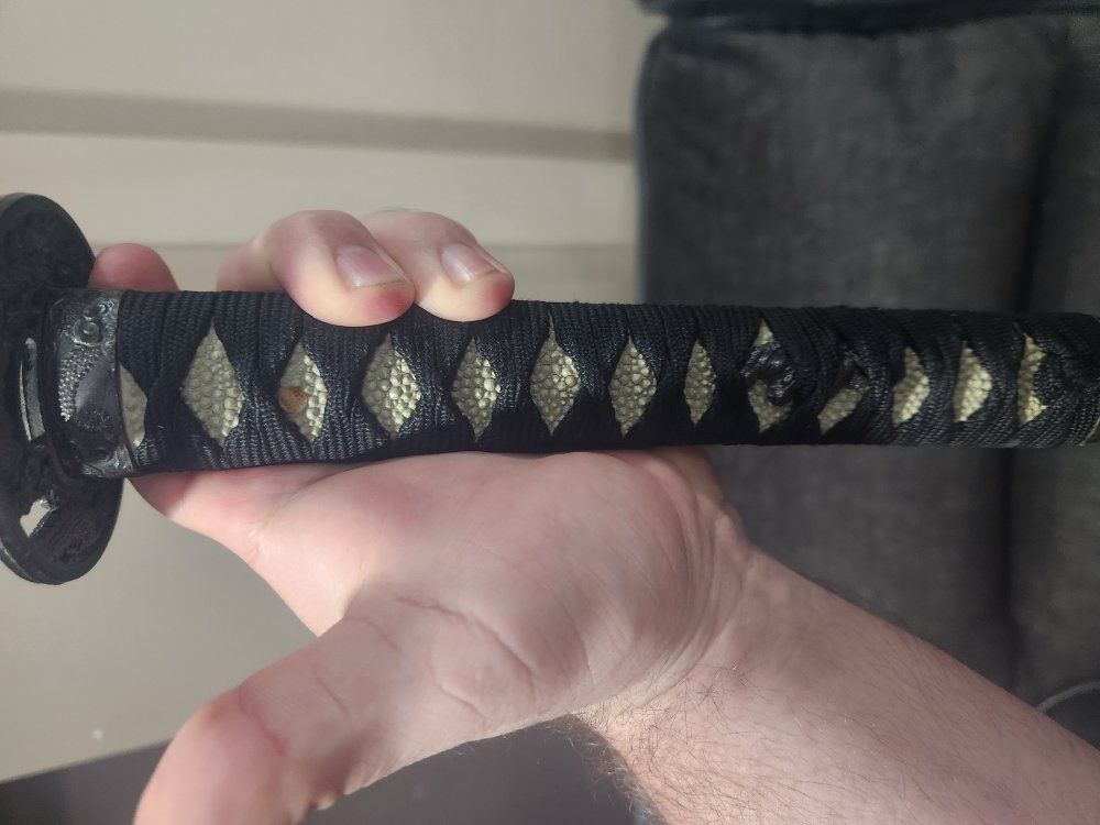 Bought for decoration years ago. When I moved I dont have a place to display it. It is dull. It is steel. Made in Japan.