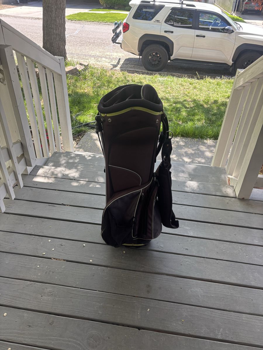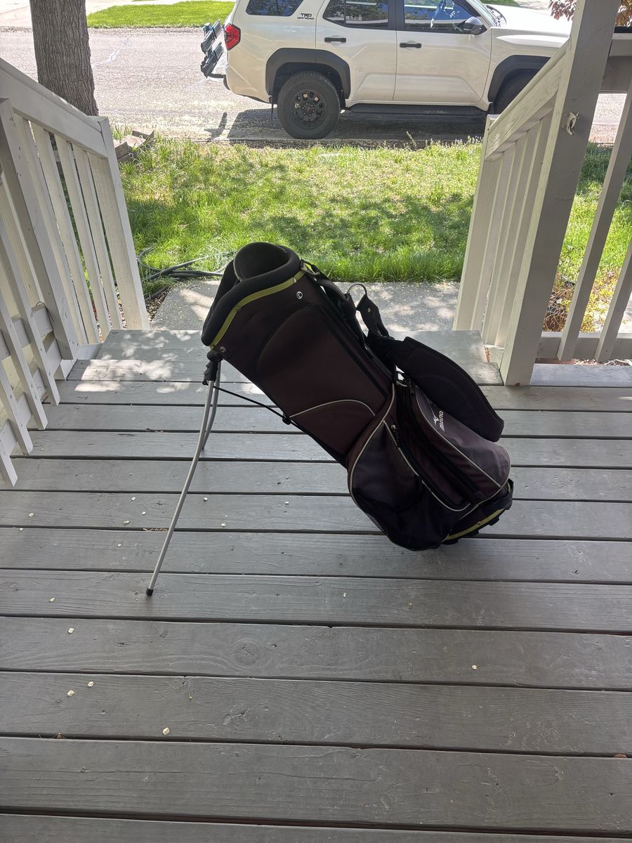 Used Mizuno golf bag. Minor damage to outside mesh pocket but other then that I’m fine condition.