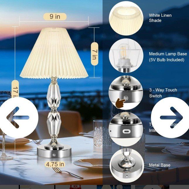 VenmoMINIMALIST DESIGN: Lamp Body Height 17 Inch, The Lamp Post Is Made Of Transparent Acrylic, Cut Into Multi-Faceted Shapes, Match 3.5" X9"X7" Inch Linen Fabric Shade, Base Width 4.75 Inch, The Surface Is Smooth And Shiny, Echoing The Acrylic Lamp Posts, And The Overall Design Is Simple Yet Luxurious, Not Only Can Be Used In Bedrooms, Study Rooms And Other Indoor Places, But Also Can Be Used In Coffee Shops, Dining Bars, Patio And Other Places. PORTABLE CORDLESS DESIGN: No Cord Twisting Annoyance, Put It On The Table Without Occupying Visual Space. Moderate Weight And Size, It's Easy To Carry A Cordless Rechargeable Table Lamp With You Wherever You Go, This Table Lamp Will Be Perfect For Saving You A Lot Of Space. TOUCH 3-WAY DIMMER SWITCH: Table Lamp With Touch Buttons Installed On The Lamp Base, Simply Change The Intensity Of The Light By Touching The Power Button Once, Sequentially To Achieve The Desired Brightness, A Variety Of Lighting Options Meet Different Needs, Suitable For Bedside, Living Room, Bedroom, Reading, Outdoor, Dining Room, Bar, Camping... BUILT BATTERY: Built-In 4400mah Rechargeable Battery, We Are Equipped With One 3W 5V LED Bulbs.