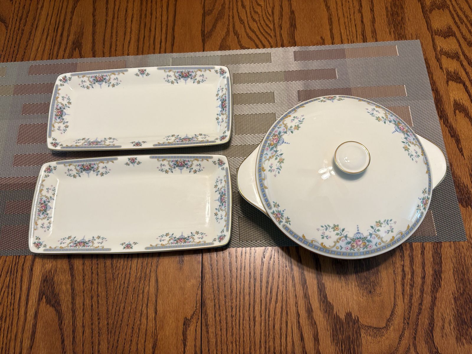 Vegetable Bowl, D. 8 3/8" H. 4 3/4" Sandwich Trays, L. 11 1/4" W. 5 5/8" Never used.