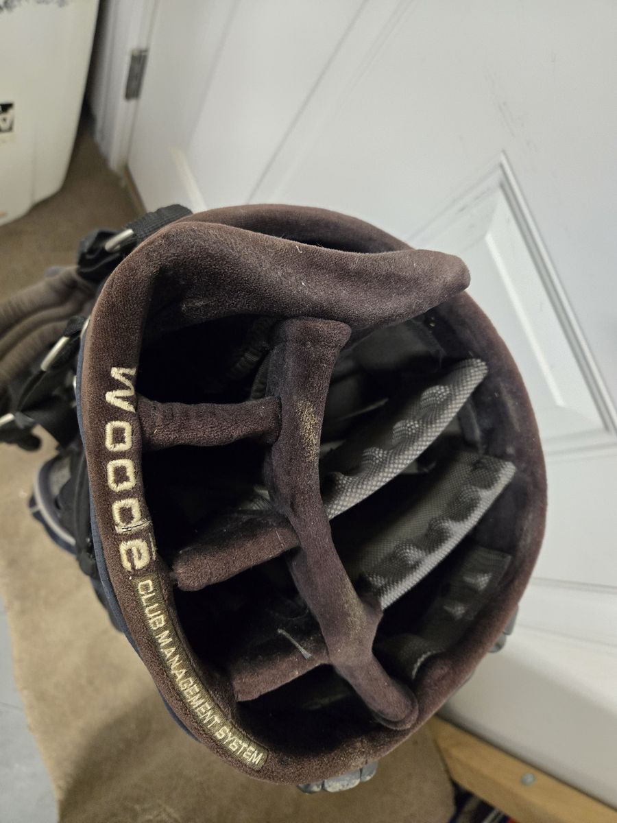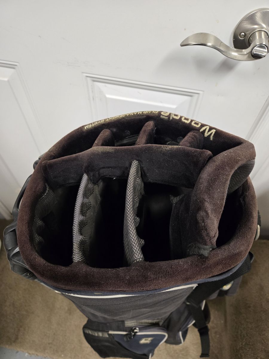 Minor signs of cosmetic wear. No major imperfections. 8 way divider with woode club management system. Double Shoulder strap and stand.