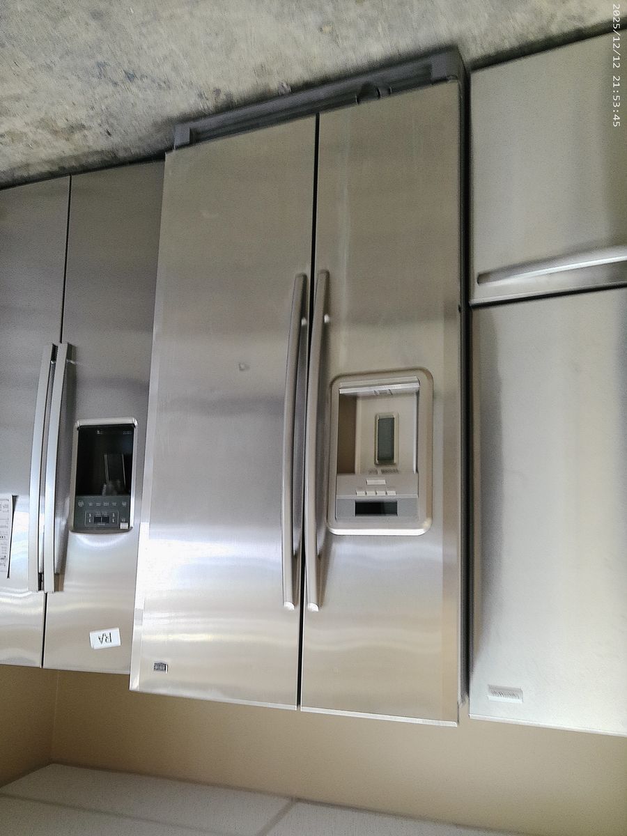 Maytag Stainless 25 cubic foot side by side refrigerator in excellent working condition. Tested, cleaned, ready to go.