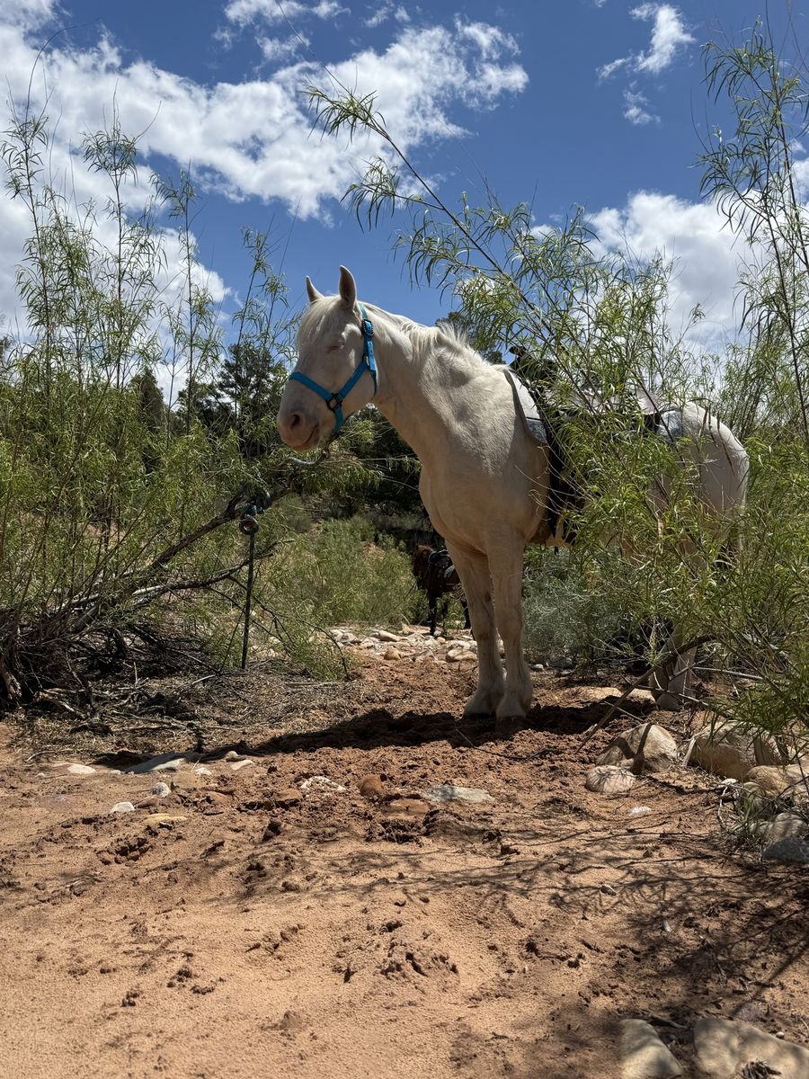 13 yr old Registered Missouri Fox Trotter. Gelding. Has a million miles on him. He is Excellent in the mountains and the arena. He is great to ride alone or in a group. He is savvy with water crossing, logs, timbers. Lopes smoothly in the arena, spins. Stands quietly for the farrier, quiet for annual vet work ups. He is a gentlemen to load, haul and stands tied without pawing. He is easy to catch and great to saddle and bridle. Stands for mounting and dismounting you can even use a mounting block or a log or? Does not sunburn. Handles mishaps see pic saddle under him. Video shows him after being in horse trailer for 9 hours. $10,500 Firm. Mighty stands about 15.2 h tall. Needs experienced rider. He is current on worming and vaccinations. He will come with a Bill of Sale. PPE are always welcome at buyers expense