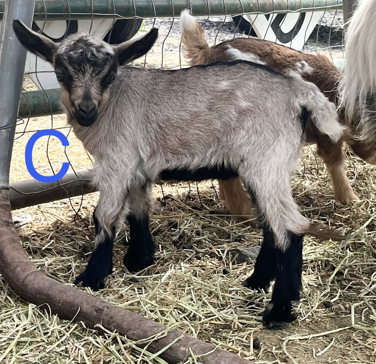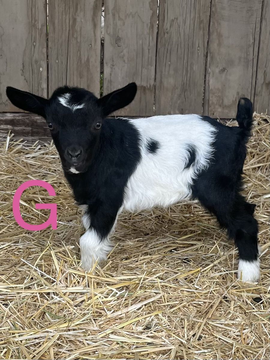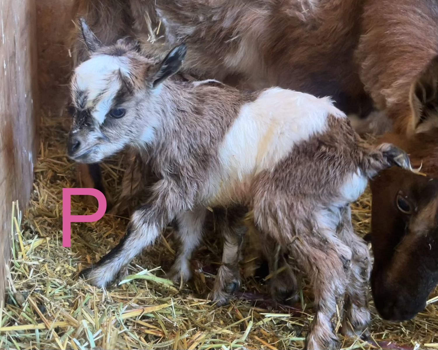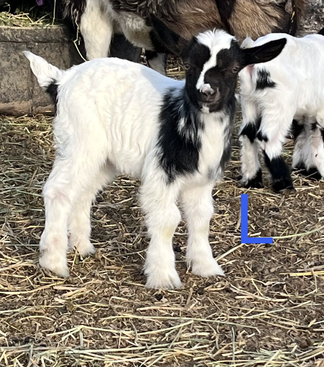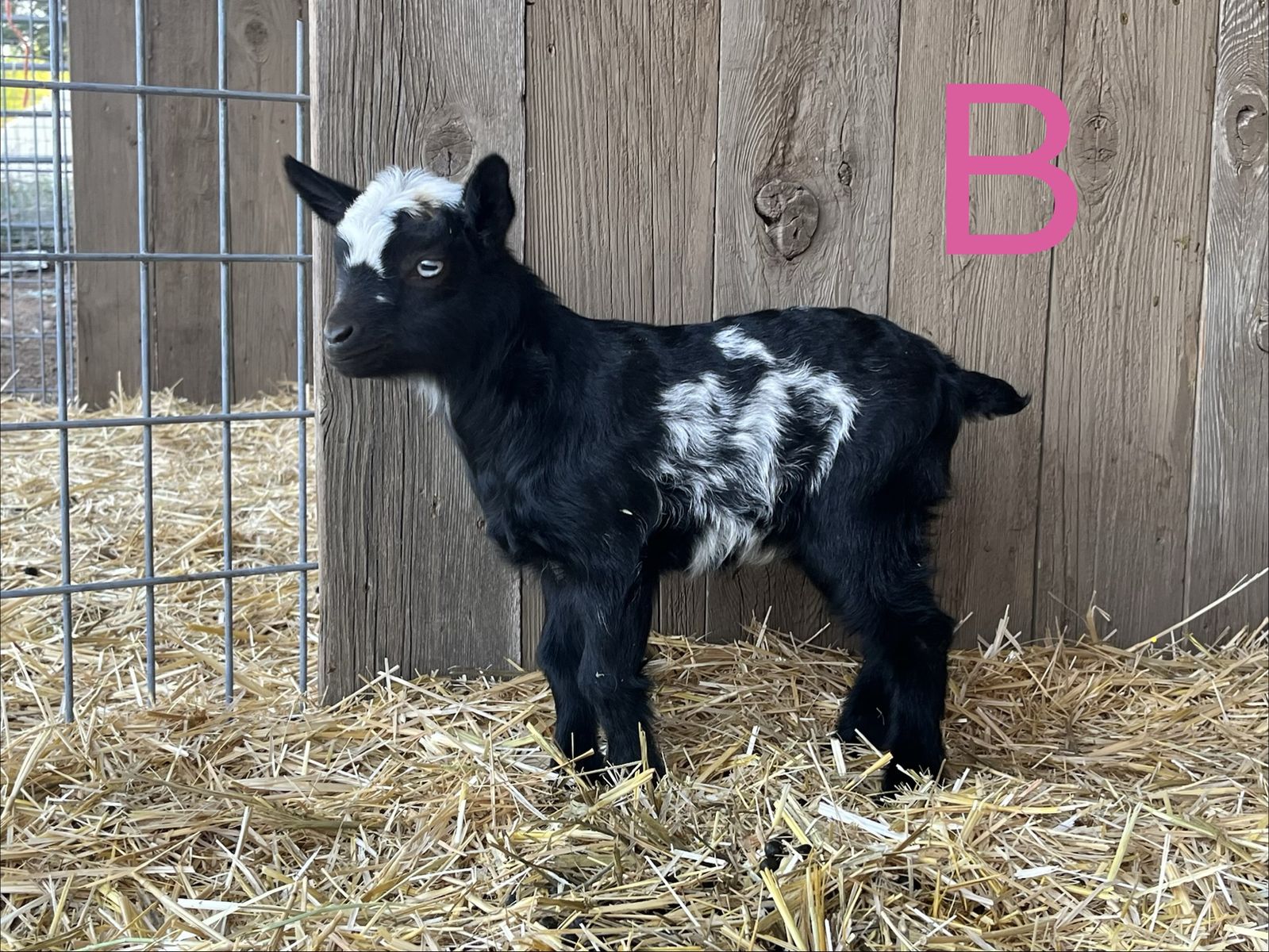 We have 17 kids: 8 females, 9 males. Polled and disbudded. (More pics coming soon!) Pink letters - females. Blue letters -Males.