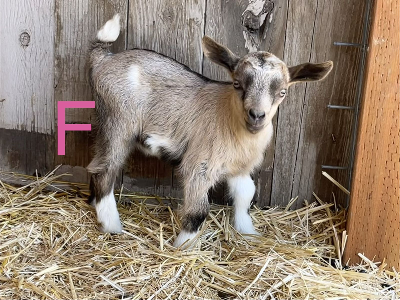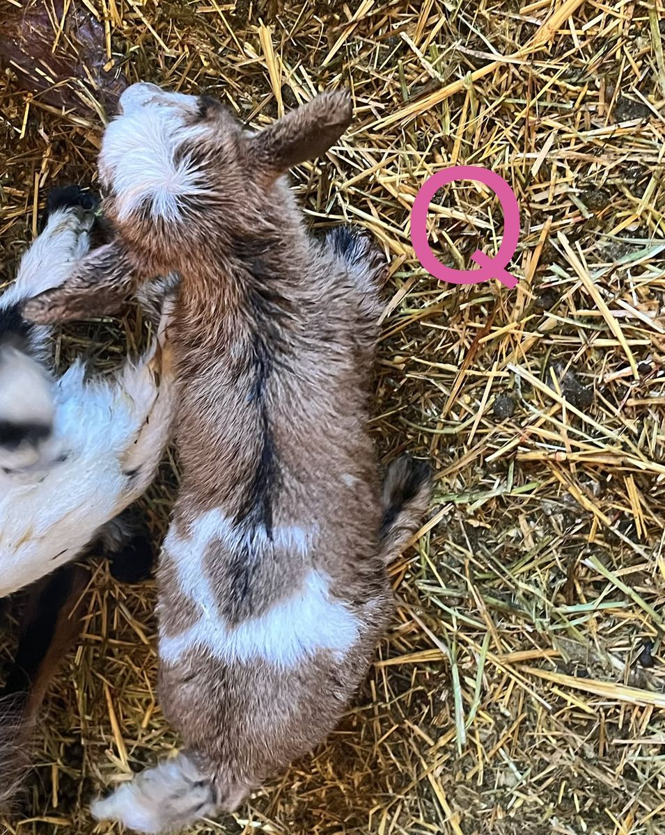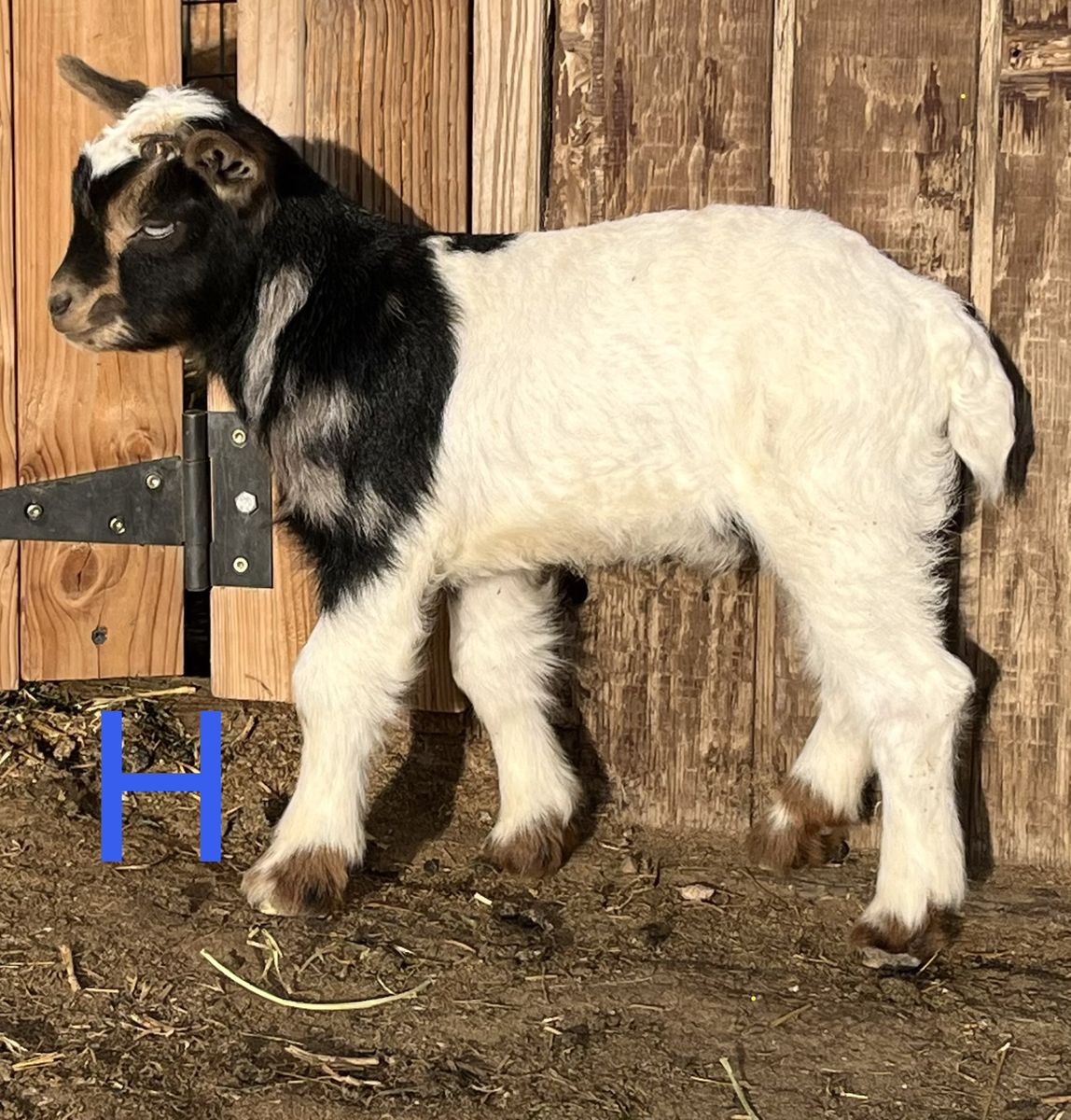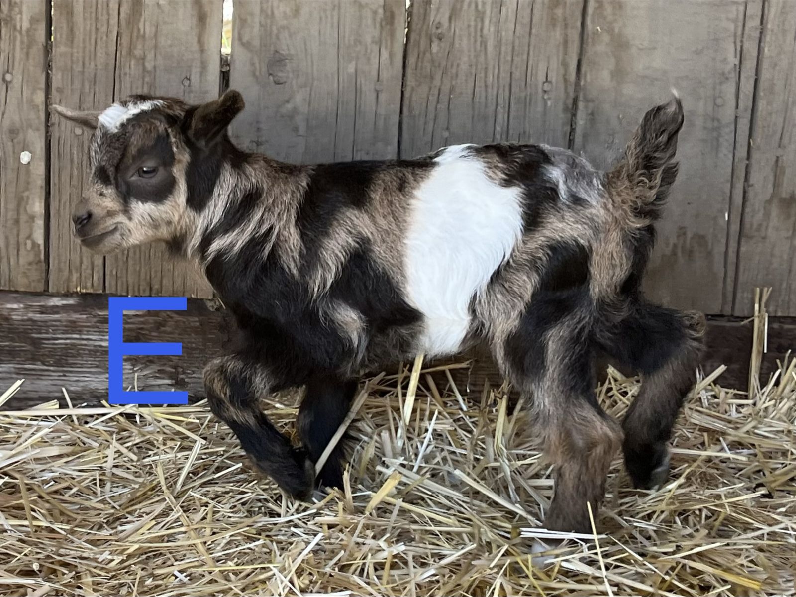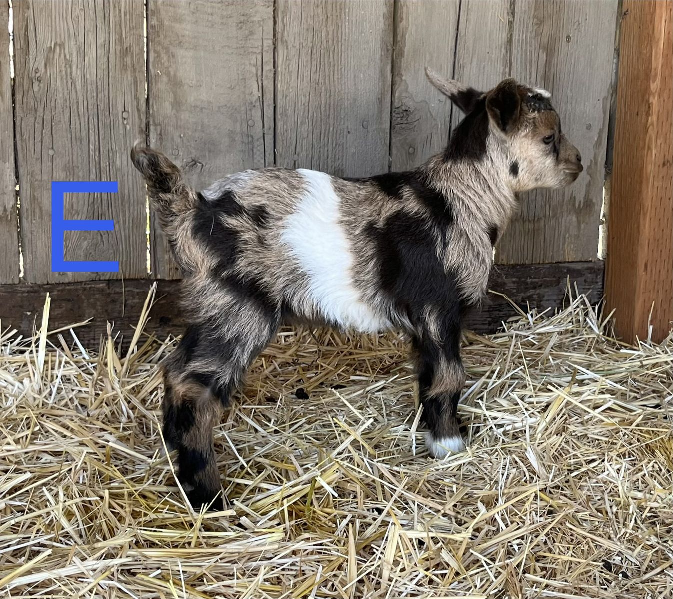 We have 17 kids: 8 females, 9 males. Polled and disbudded. (More pics coming soon!) Pink letters - females. Blue letters -Males.