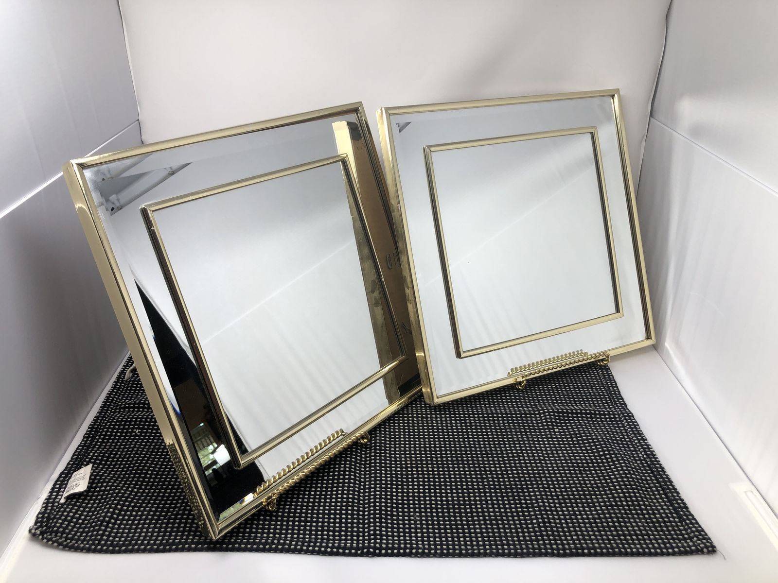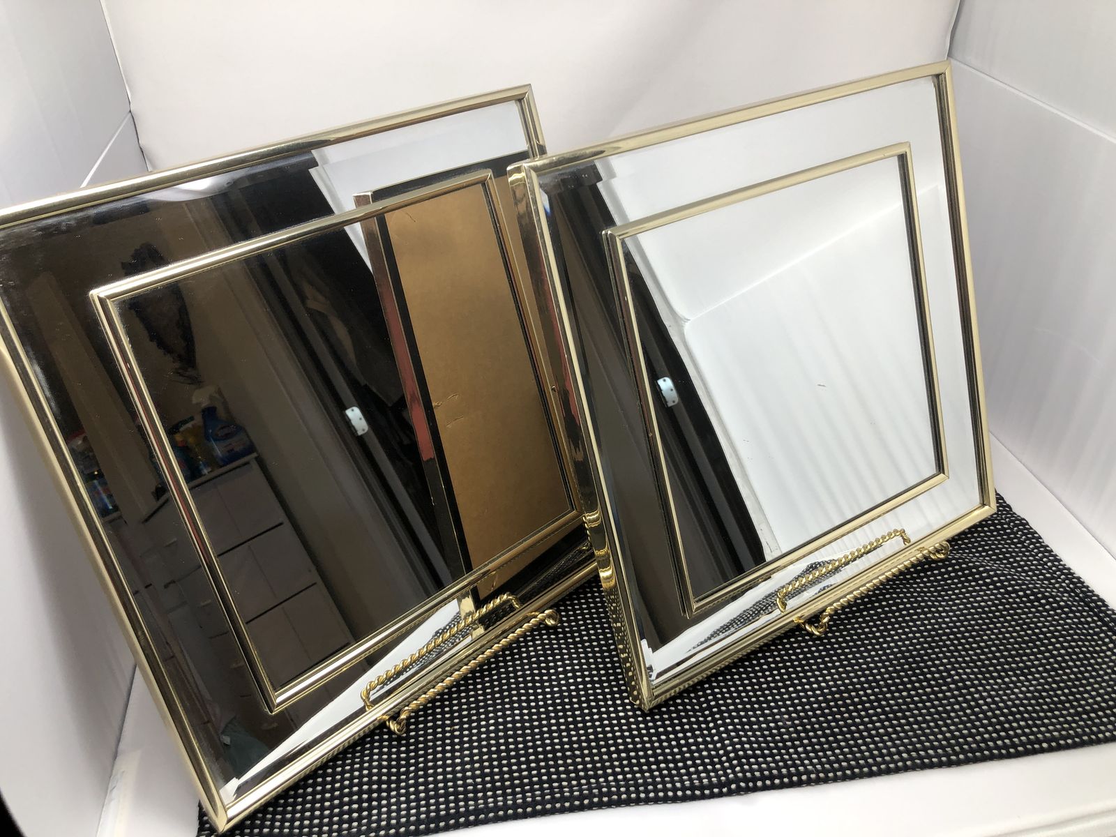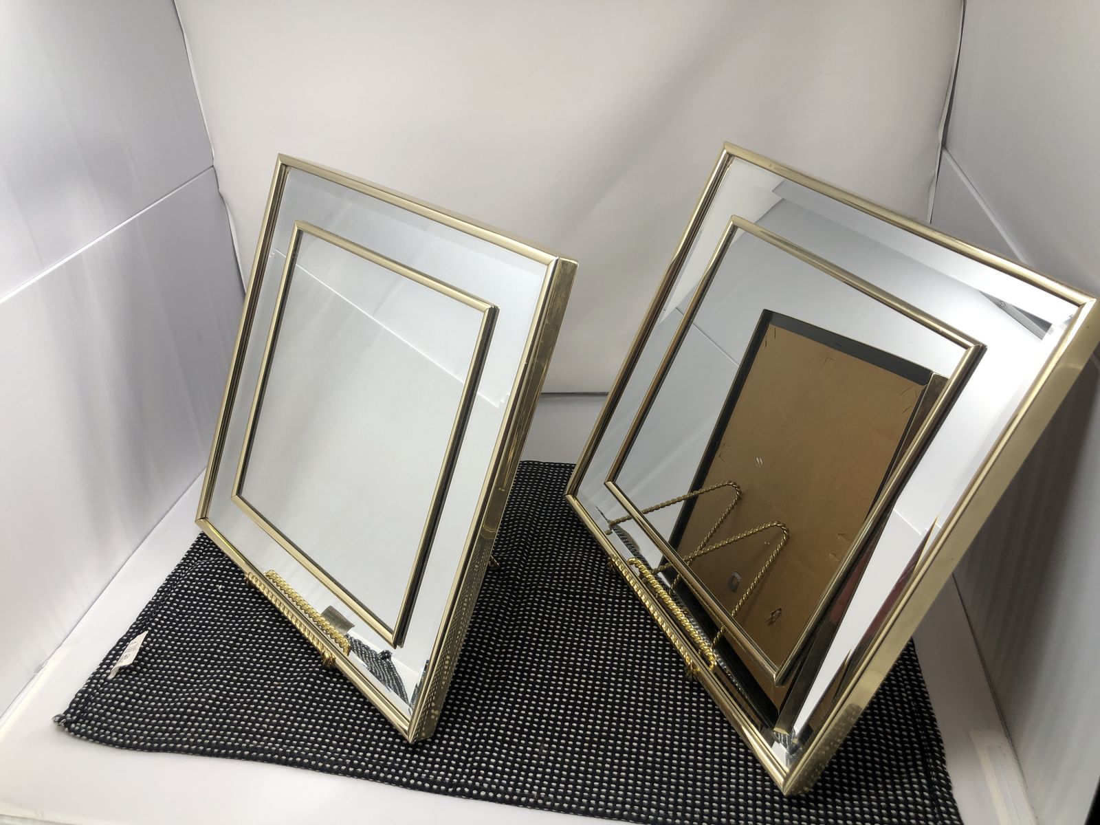 VenmoBeautiful set of 4 vintage square wall mirrors in a classic Hollywood Regency style. These feature an elegant gold-toned frame with a unique inset mirror border that adds depth and extra shimmer to any wall.