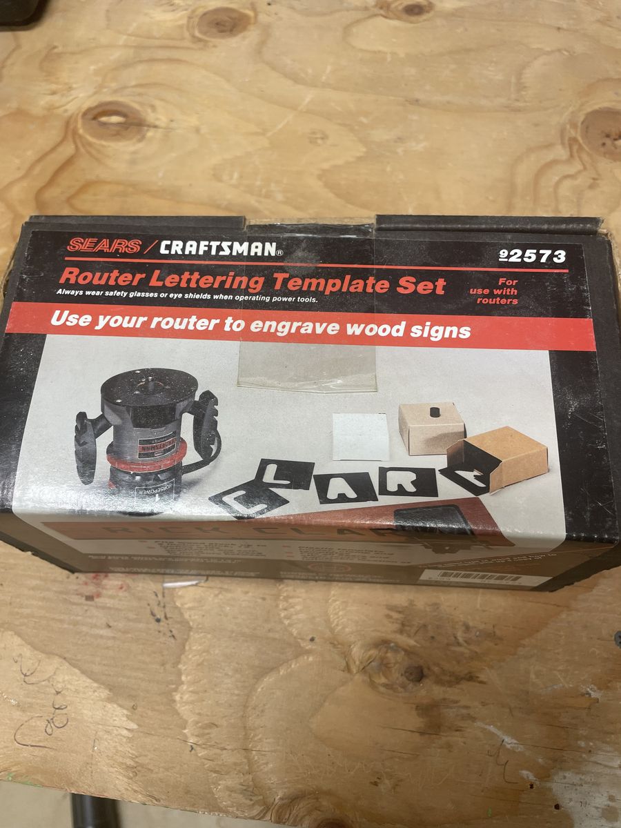 VenmoSears Craftsman 1755 1.0 HP wood router with router table, assortment of bits, letter/number templates, and instruction book.